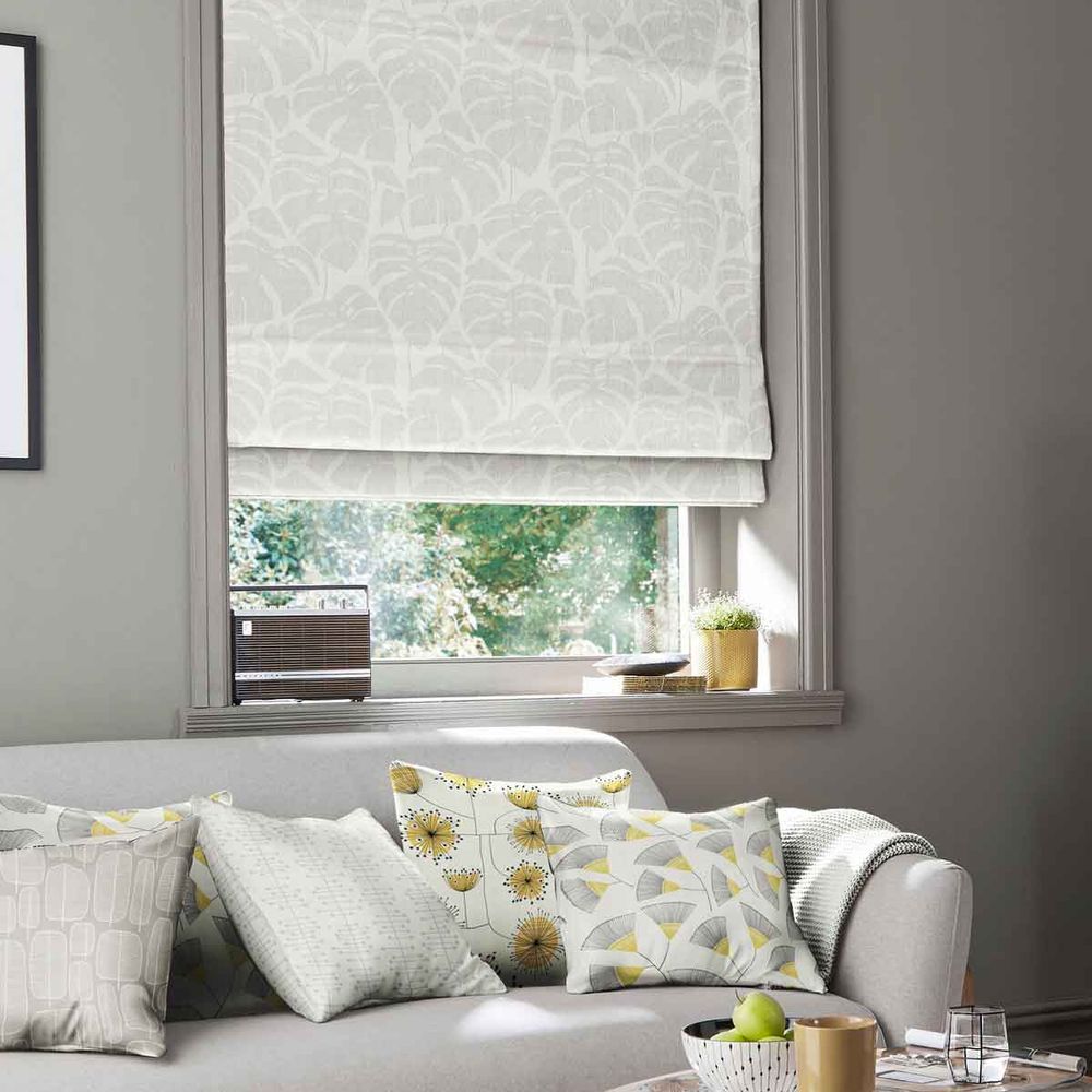 Item Code: ROMF-1183-RM Featuring a contemporary style of large tropical leaves with a subtle grey cross-hatched pattern on a pure white background, this design is ideal for creating a bright and open space in any room. Using styles that combine geometric shapes with patterns inspired by the natural world alongside bright, eye-catching colours, the hand-drawn roman blind and curtain designs in the MissPrint collection are ideal for adding a fresh, contemporary look into your home decor. This textured fabric design uses a 100% cotton finish, which is perfect for providing a subtle light filtering solution in your home.
