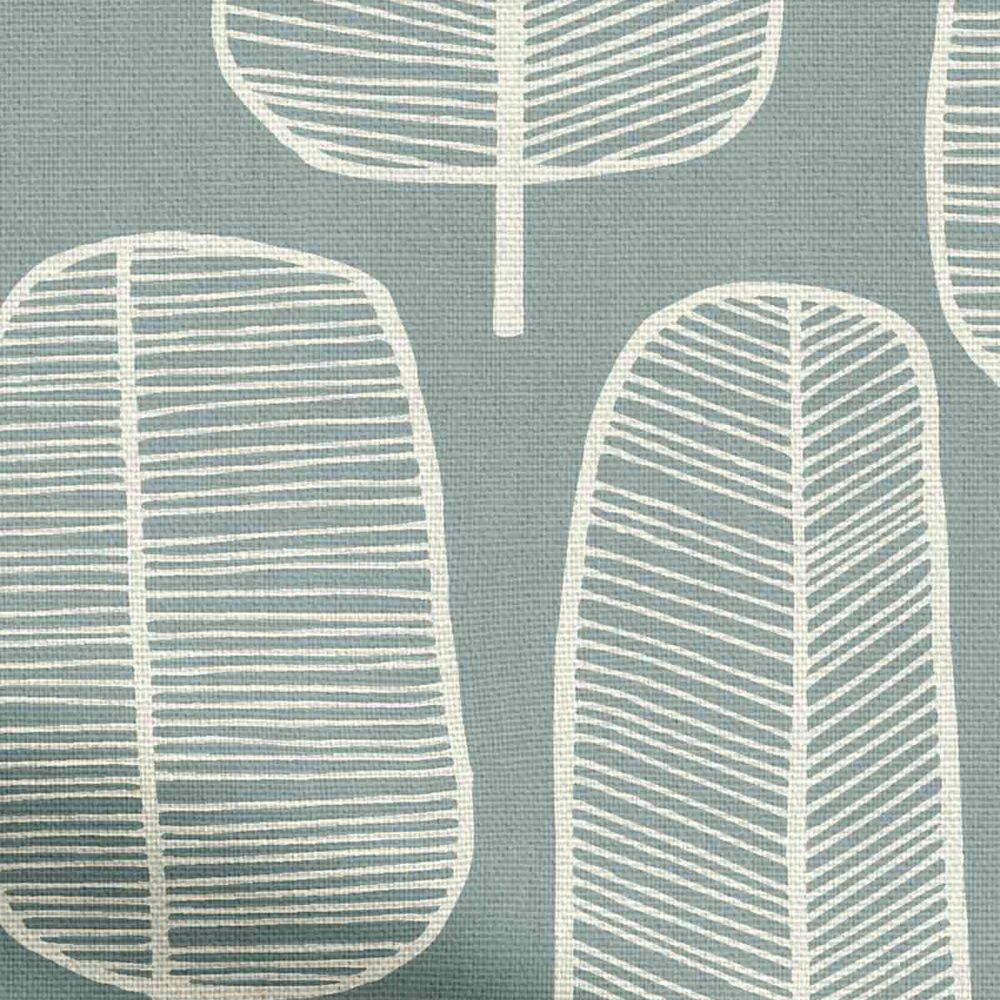 This scandi-inspired screen-printed design features sketch-book style trees of white over a grey-blue background to create a calm and relaxing minimalistic style.