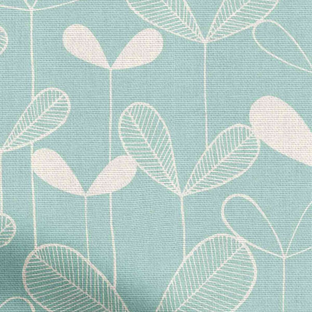 Item Code: ROMF-1201-RM With a repeating pattern of abstract floral-inspired leaves in a white line-art style, this vertical design uses an aqua-green background to create a bright and relaxed atmosphere in any room. Using styles that combine geometric shapes with patterns inspired by the natural world alongside bright, eye-catching colours, the hand-drawn roman blind and curtain designs in the MissPrint collection are ideal for adding a fresh, contemporary look into your home decor. This textured fabric design uses a 100% cotton finish, which is perfect for providing a subtle light filtering solution in your home.
