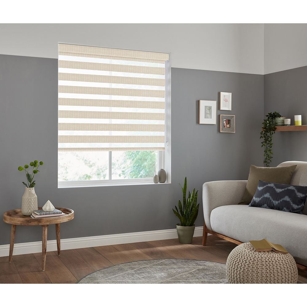 Item Code: FIFT-0024 With natural light brown woven lines and an elliptical weave pattern that is mirrored throughout the fabric, this design can create a spacious and subtle warmth in any room.