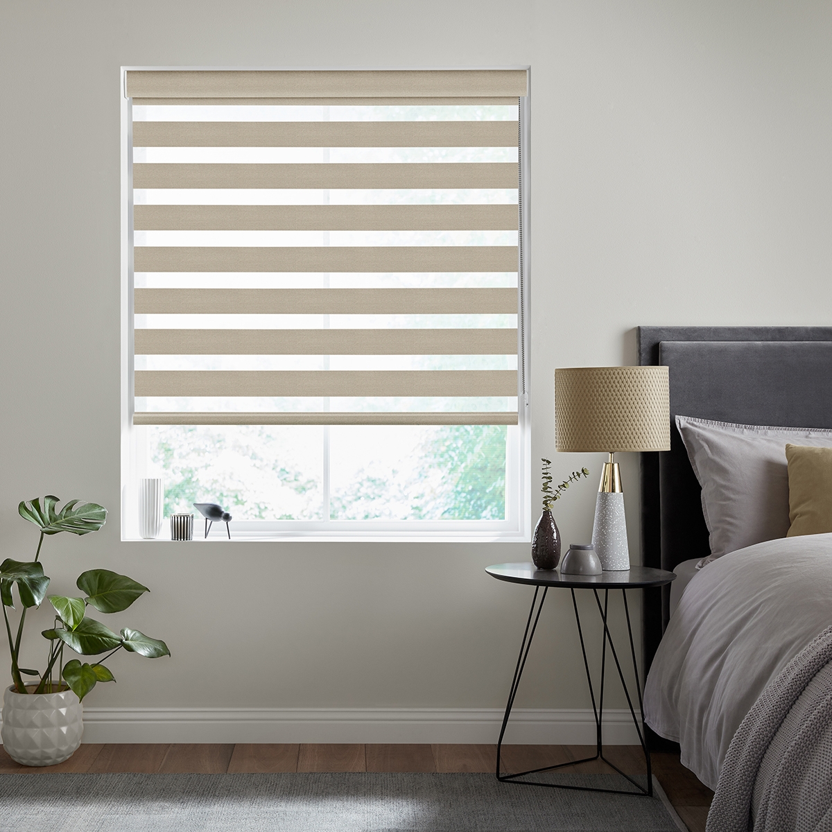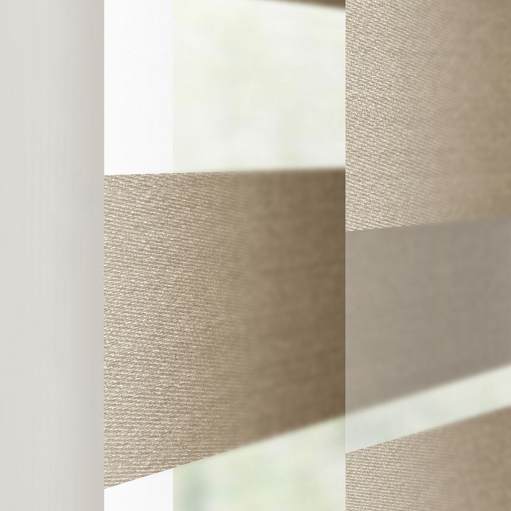 Featuring solid colour panels of a warming mink-brown alongside micro-mesh net fabrics, this design brings a welcoming sense of comfort into any room.
