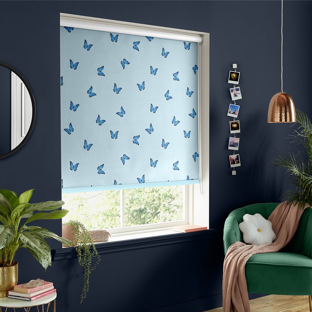 These made to measure roller blinds are a blue butterfly dream! Add this vibrant set to any room for instant fluttering fun.