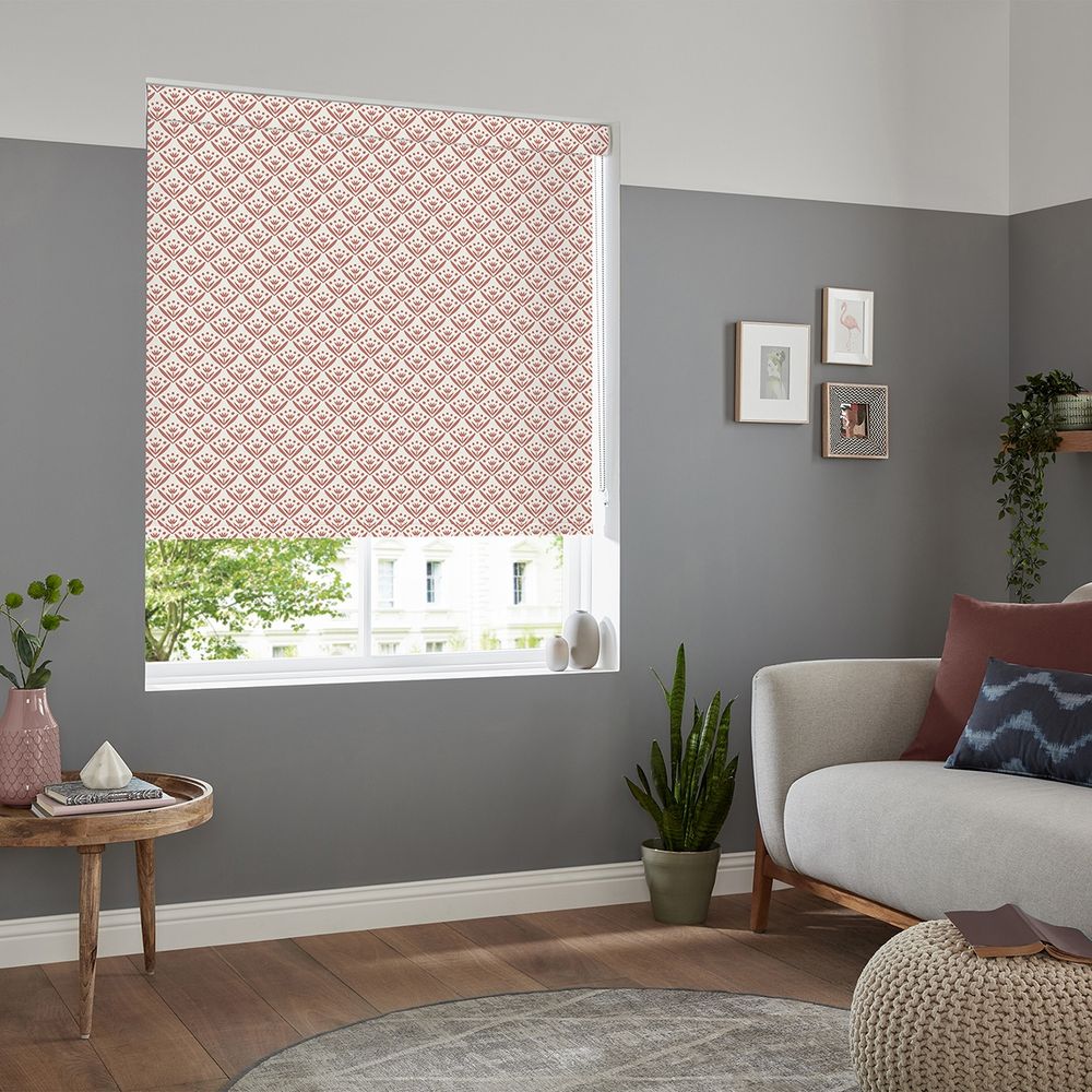 This luxurious red roller blind offers vibrant colour and a contemporary look to any room. Its energy efficient design keeps the sun's UV rays and heat from entering, while allowing in just enough natural light. Ideal for those seeking a practical and stylish solution for window dressing. This fabric is 100% polyester, making it easy to care for and durable.