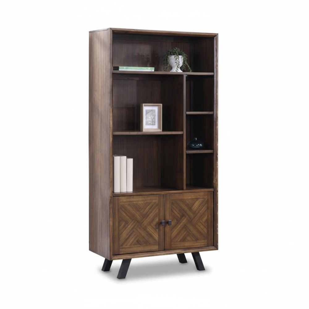Nevada Wide Bookcase - with Cupboard - Parquet Style Wood