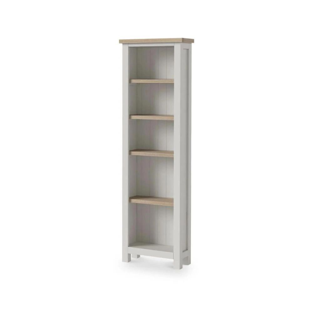 Maximise storage in narrow spaces without compromising on style with the Modern Grey Painted Slim Bookcase. Crafted from solid wood and oak, this elegant bookcase is both durable and refined, making it perfect for living rooms, bedrooms, or home offices.