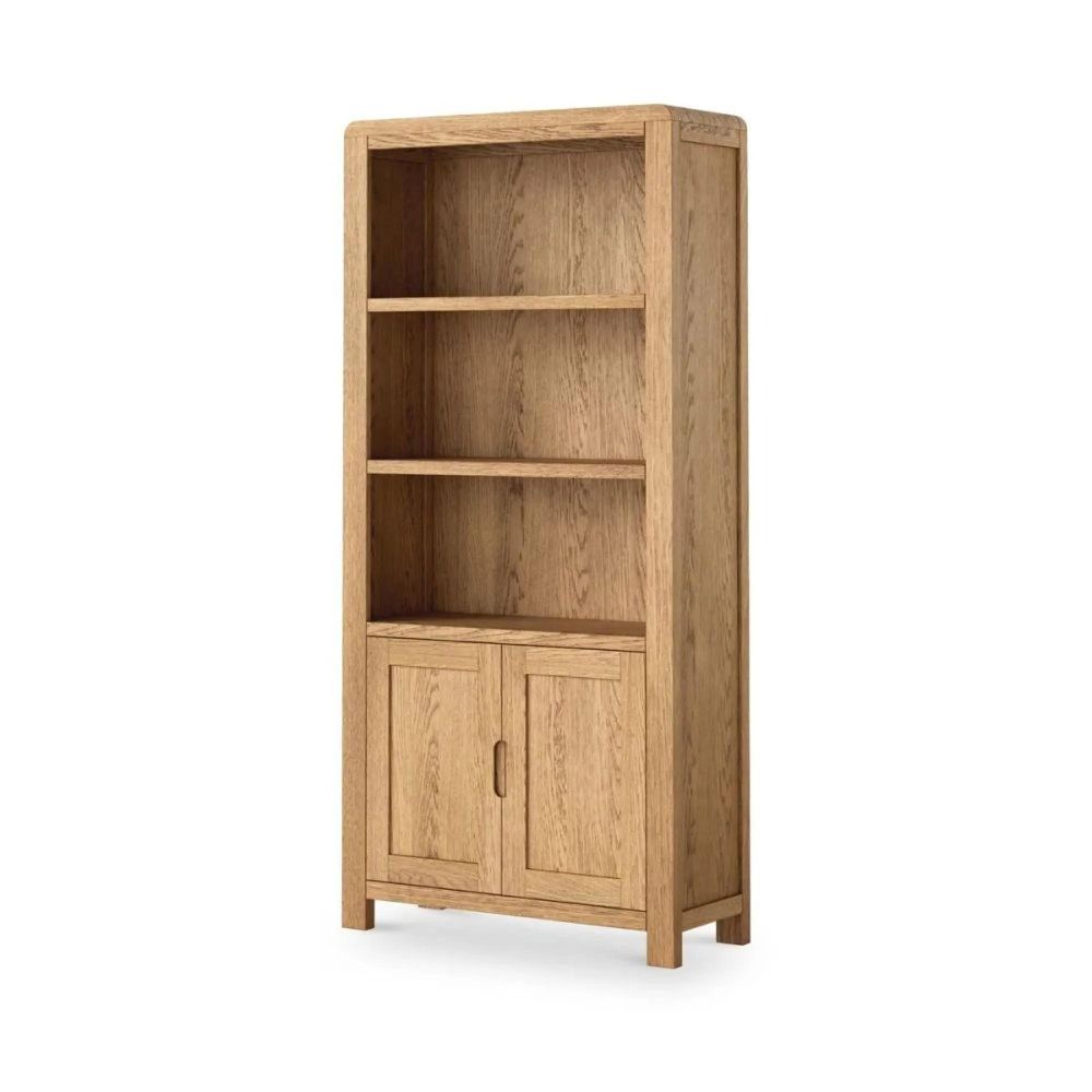 Combine style and storage with the Thurlestone Curved Oak 2 Door Large Bookcase, a statement piece that brings elegance and practicality to your home. Its curved edges and recessed handles create a sleek, contemporary look, while the natural oak finish highlights the beauty of the wood grain. Perfect for living rooms, studies, or dining areas, this bookcase blends functionality with refined design.