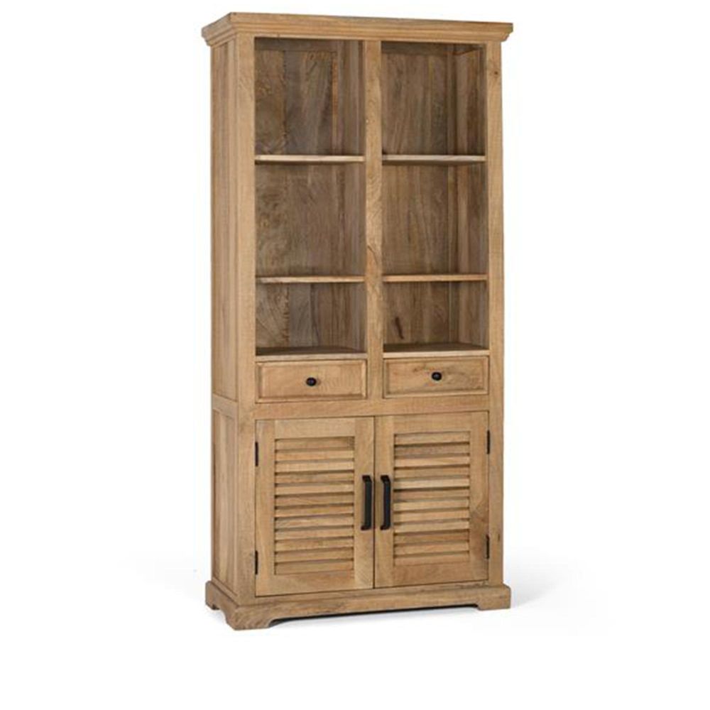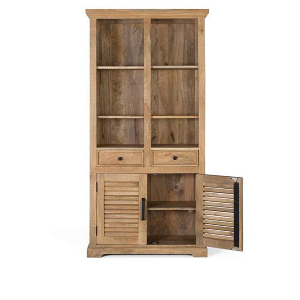 Jaylene Bookcase - Mango Wood - Louvered - with Cupboard