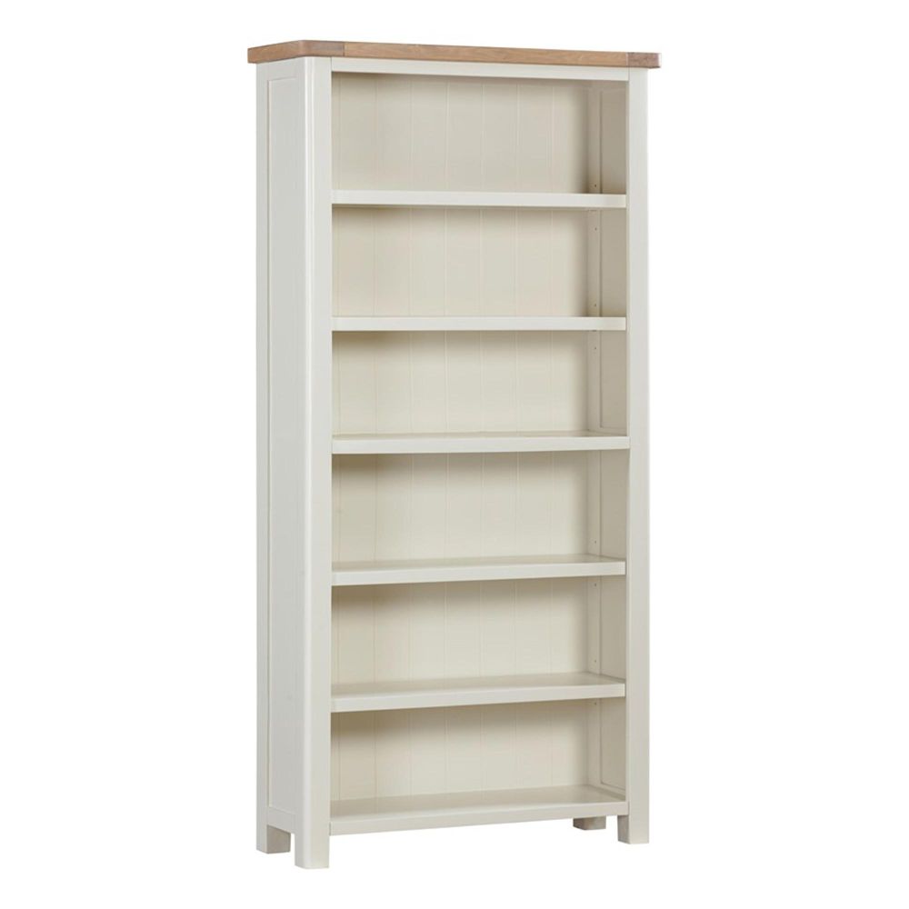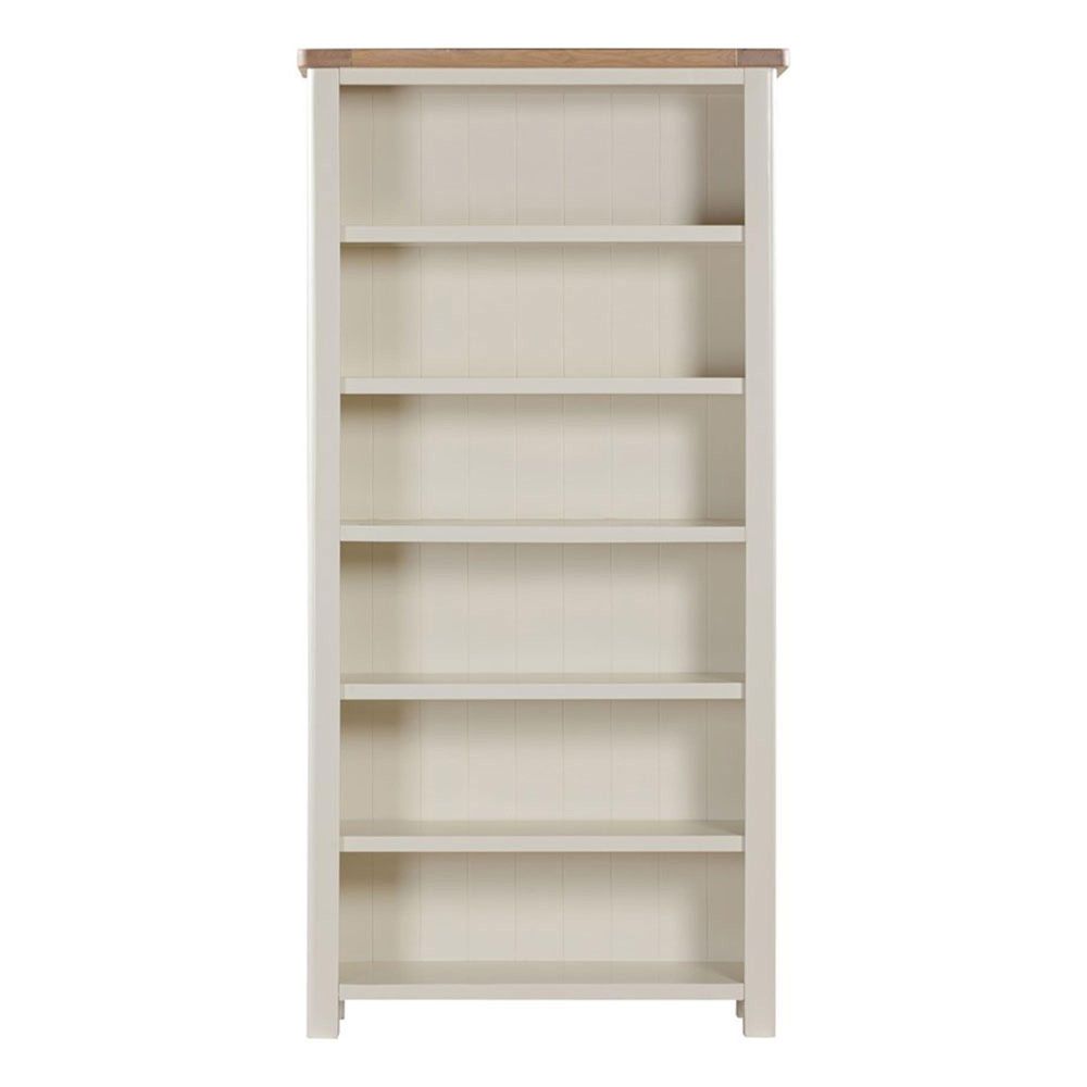 Item Code: 114-23 Hayley Painted 180cm bookcase, is characterised by its contemporary washed oak top finish, and clean shaker style painted base in an off white finish.Free Delivery