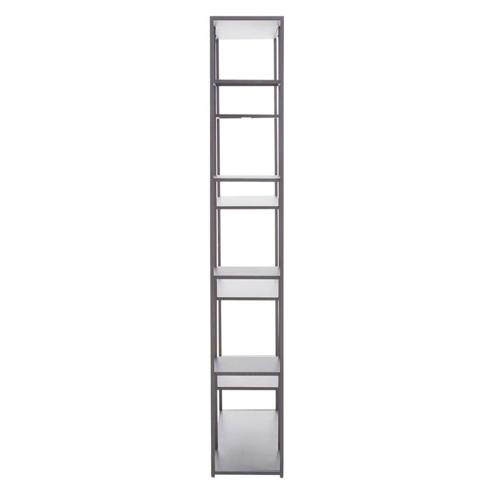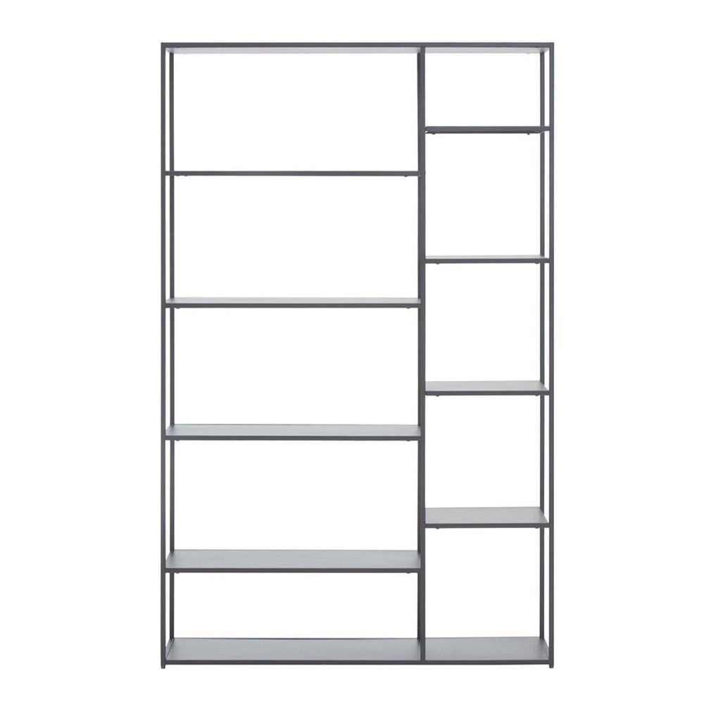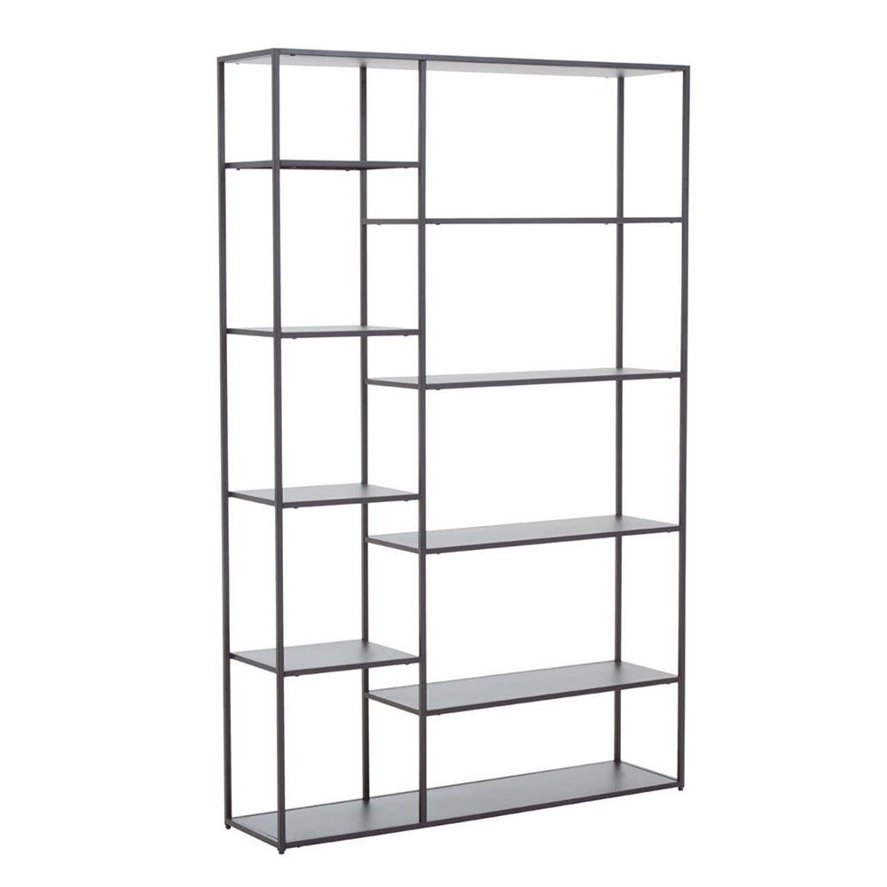 Item Code: 2406608 The Acero grey metal shelf unit elevates modern minimalism and offers a simple storage solution to keep things organised and within reach.Made from sturdy metal with grey powder coating, this shelf unit features multi level shelves which make it easy to organise and display items. The large and small shelves are defined by clean and minimalist lines which combine to create openwork.