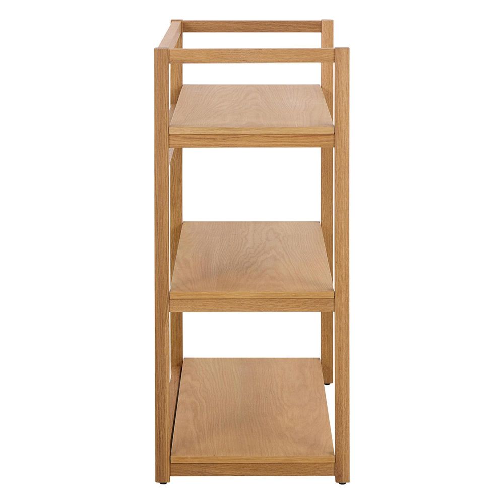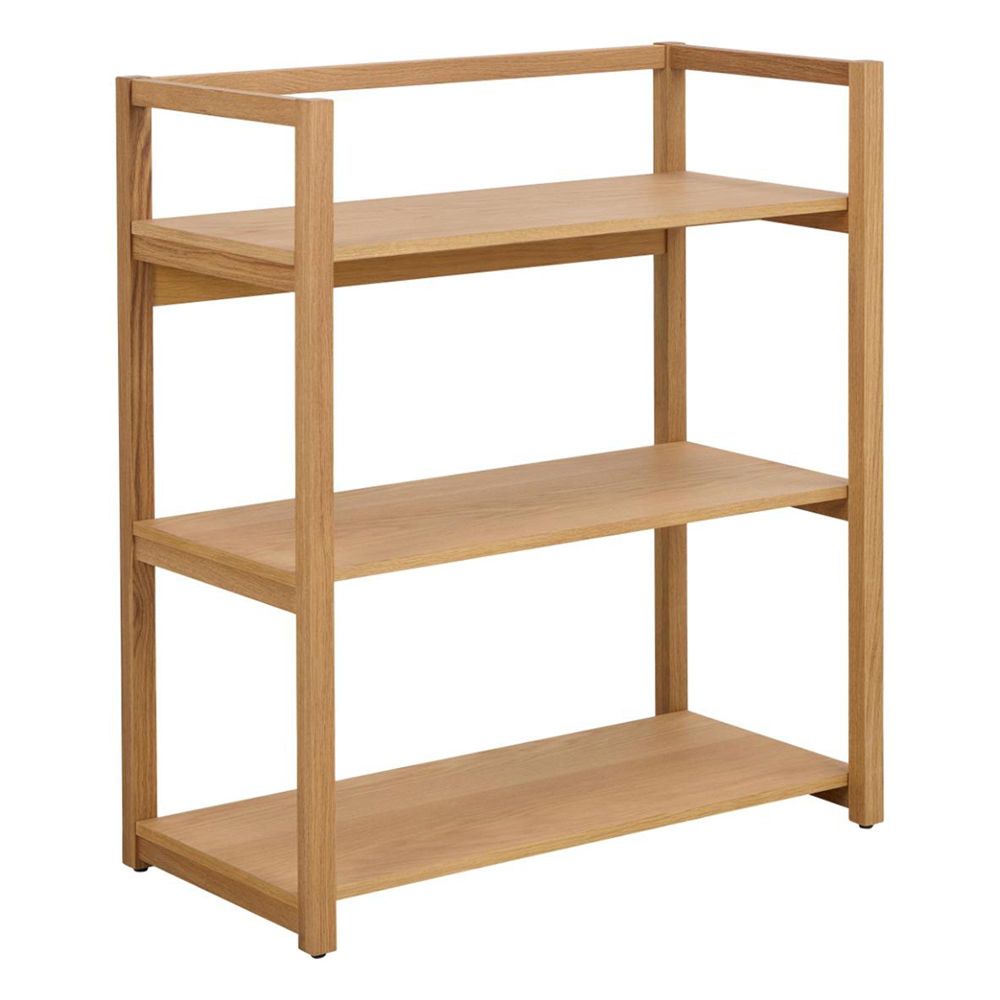 Item Code: 108861 Ludza rectangular bookcase, frame, 3 shelves and base oak oiled veneer with straight grain. Defined by clean lines and sturdy form in an oiled oak veneer, the mid-century silhouette of this bookcase is undeniable. With 3 shelves and a natural appeal, this open bookcase enhances your curated book collection and other collectibles. Its subtle 1960s style brings a retro charm to the living room and home office. FSC certified.Free Delivery