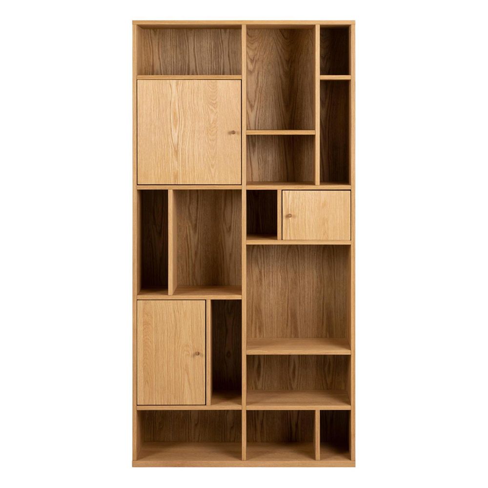 Item Code: H000023495 Rangoon bookcase, frame, 3 doors and 11 shelves oak oiled veneer with asymmetrical detail and open compartment. This bookcase harmoniously combines a natural charm and visual interest. With open and closed storage arranged in an asymmetrical style, this bookcase provides ample space and engages the eye too. Made with oil treated oak veneer, it boasts a grain pattern that is enhanced by the oiled finish, contributing to a warm atmosphere in your living space. FSC certified.Free Delivery