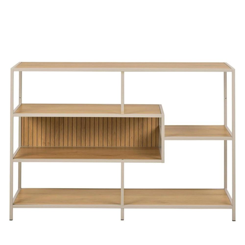 Item Code: 108320 Seaford bookcase, frame and base grey rough powder coated steel, 4 shelves oak rough melamine with reversible back panel and asymmetrical detail. Seaford bookcase, frame and base grey rough powder coated steel, 4 shelves oak rough melamine with reversible back panel and asymmetrical detail. FSC certified.Free Delivery