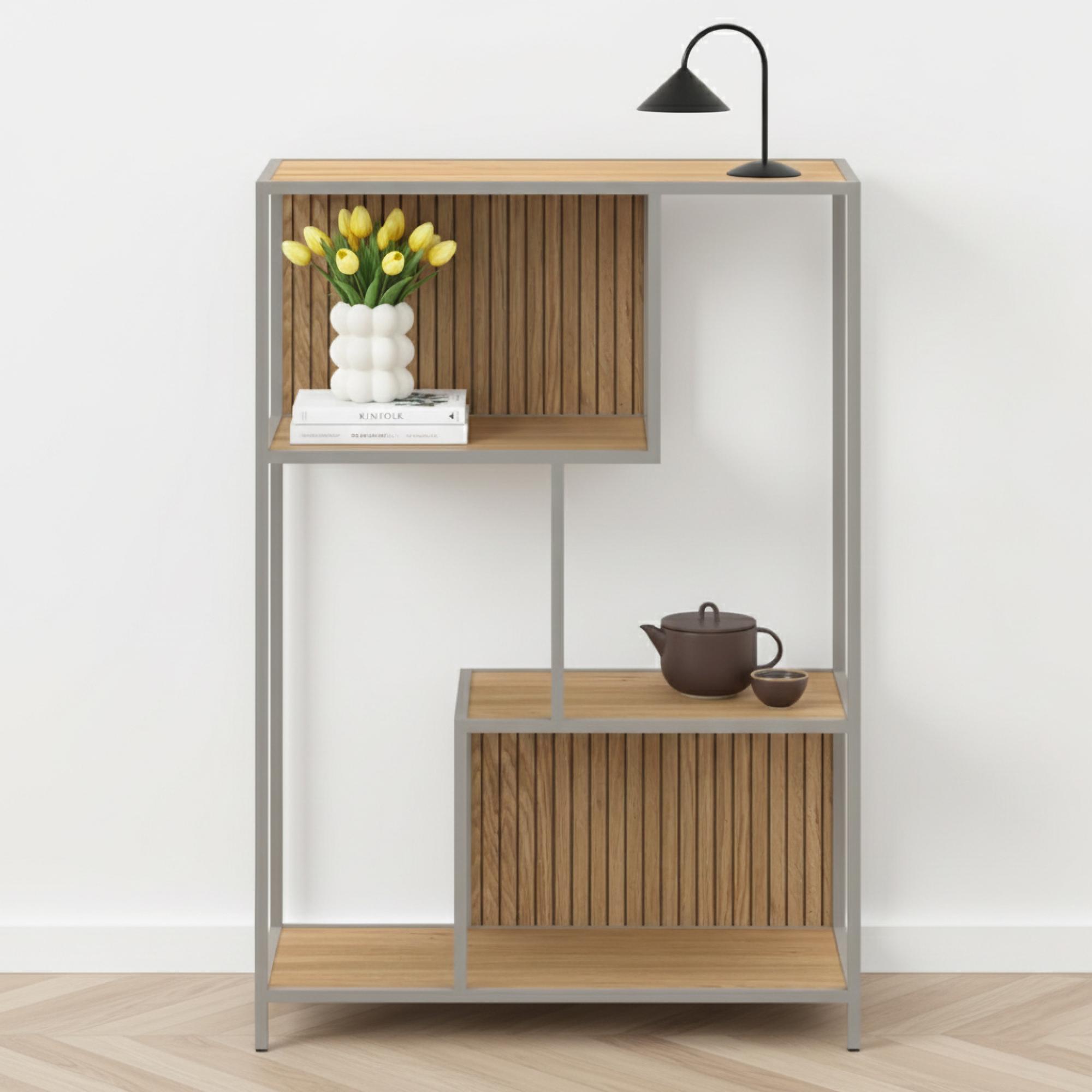 Seaford Shelving Unit - Slatted - Oak and Grey Metal