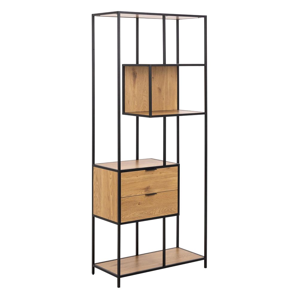 Seaford Shelving Unit - 2 Drawer - Tall - Oak and Black Metal