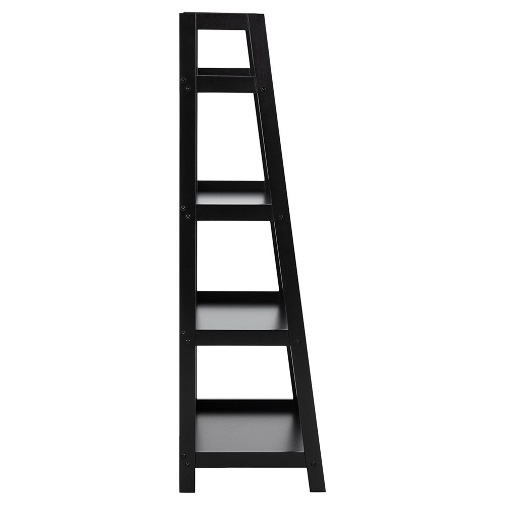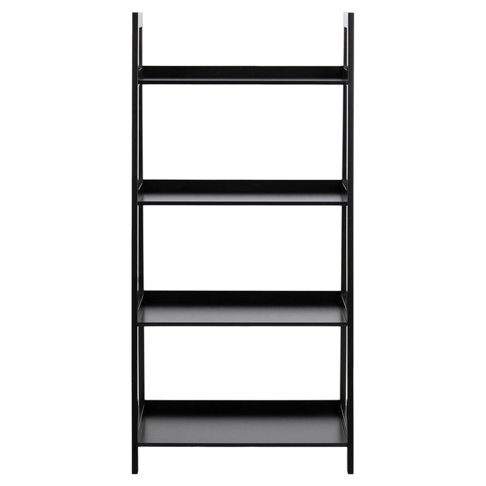 Item Code: 105111 Wally bookcase, frame and base black NC painted MDF, 4 shelves black UV painted MDF with step shape. A ladder bookcase in Nordic style is a great solution for displaying your favourite objects. The open-frame bookcase with 4 shelves is the perfect spot for your favourite reads, potted plants, storage boxes, and anything else you need nearby in your living room, office, or bedroom. Once assembled, you get a stable and stylish bookcase that will give the room a cozy feeling. FSC certified.Free Delivery