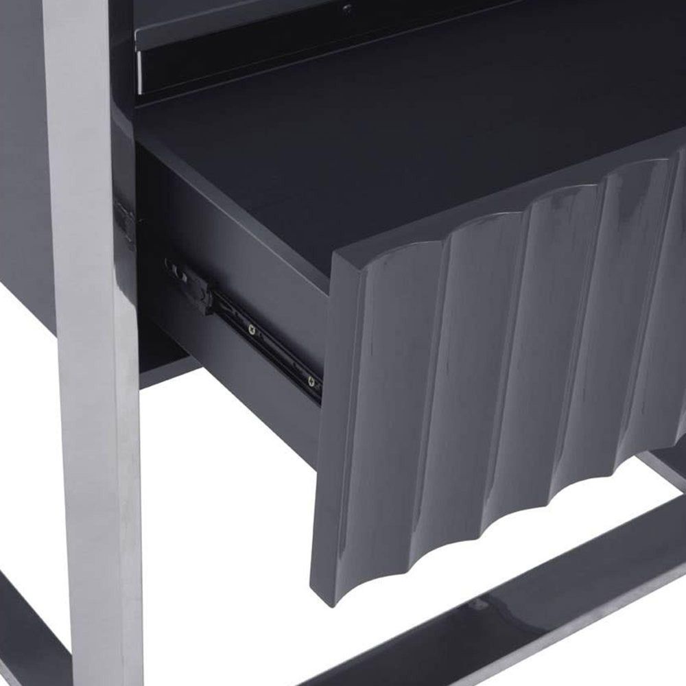 Genoa Shelving Unit - 1 Drawer - Open - Fluted Grey High Gloss and Metal