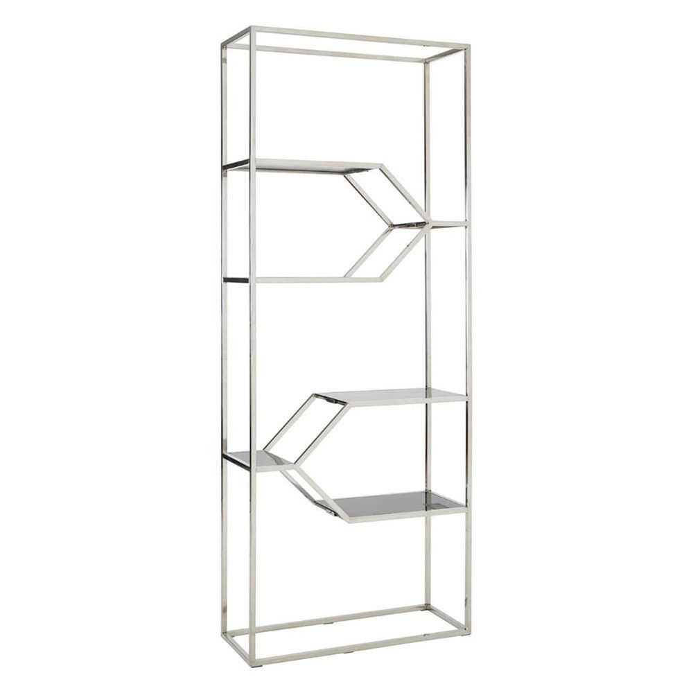 Item Code: 5502745 The Horizon shelving unit has a silver finish, featuring geometric open shelves perfect for displaying items stylishly in modern interiors.This modern shelving unit boasts a sleek chrome frame and eye-catching geometric shelving, blending functionality with artistic flair. The shelving unit is ideal for showcasing accessories or decor in sophisticated, minimalist spaces.