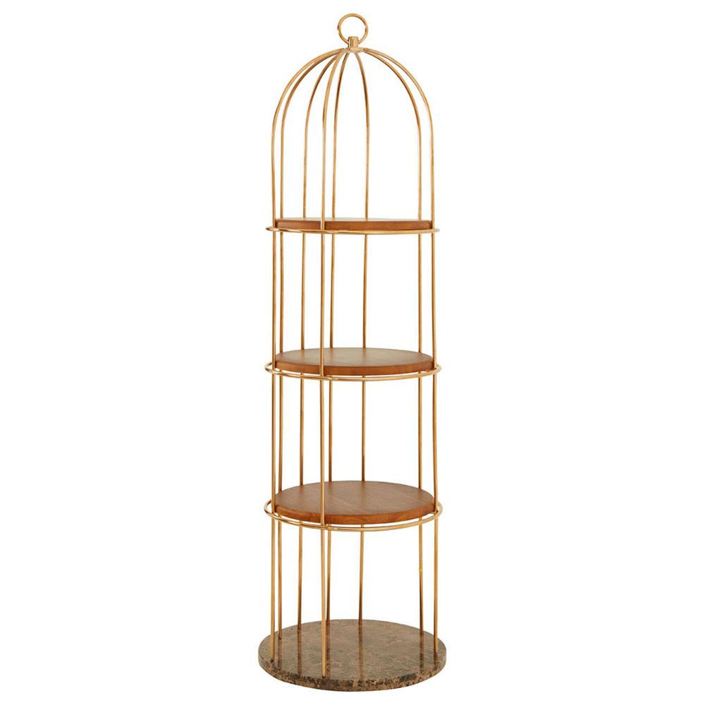 Item Code: 5502757 This shelf will make a luxurious addition to interiors with its warm metallic tone and decorative aesthetic.This bird cage design shelf has a stainless steel frame crafted from slender bars and is given a rich rose gold finish. It features three faux marble tiers, providing ample space for displaying items in a contemporary way.
