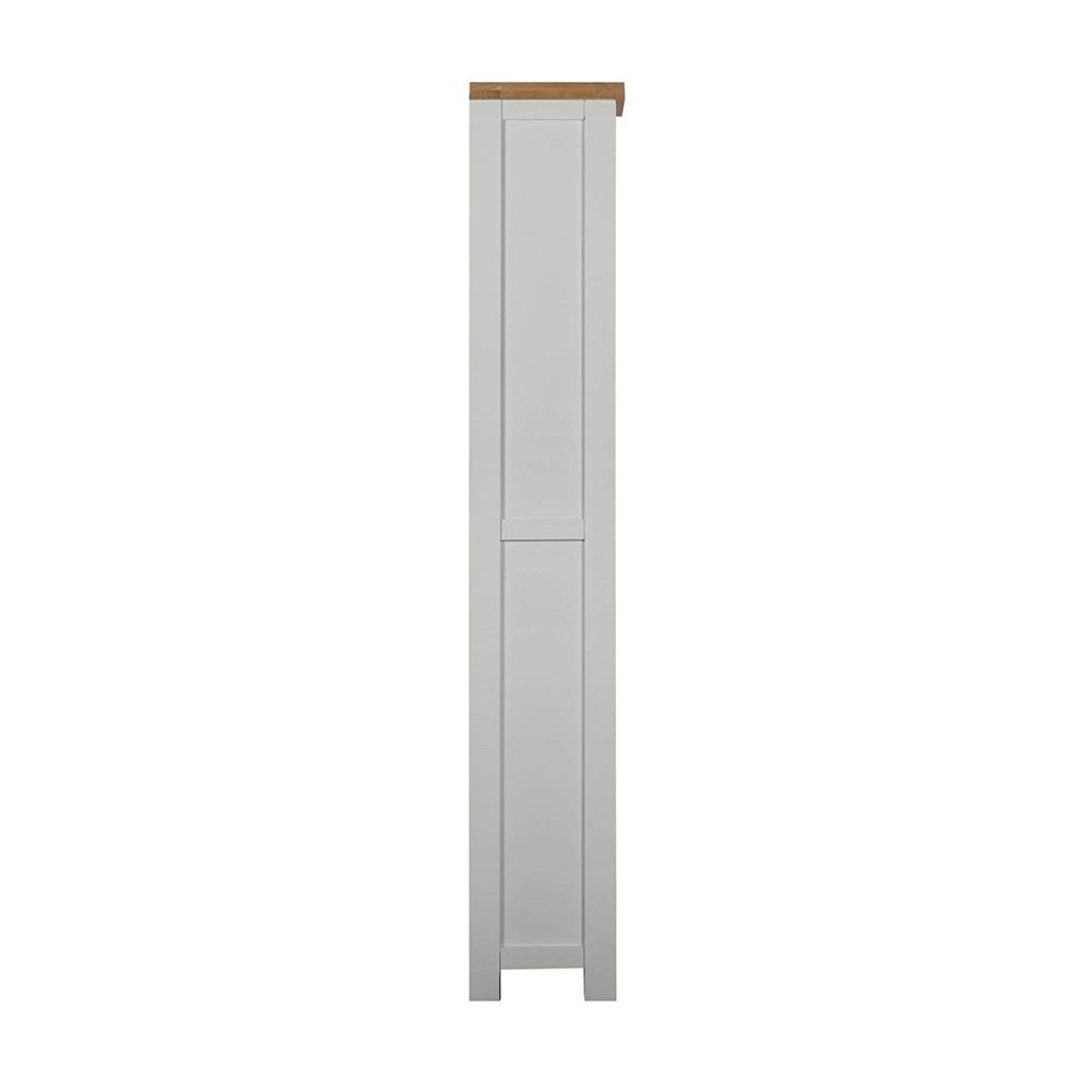 With its painted frame and natural oak top, this tall wide bookcase offers generous storage and timeless appeal. Clean lines and open shelving make it ideal for showcasing books, ornaments, and personal treasures in a modern country home.