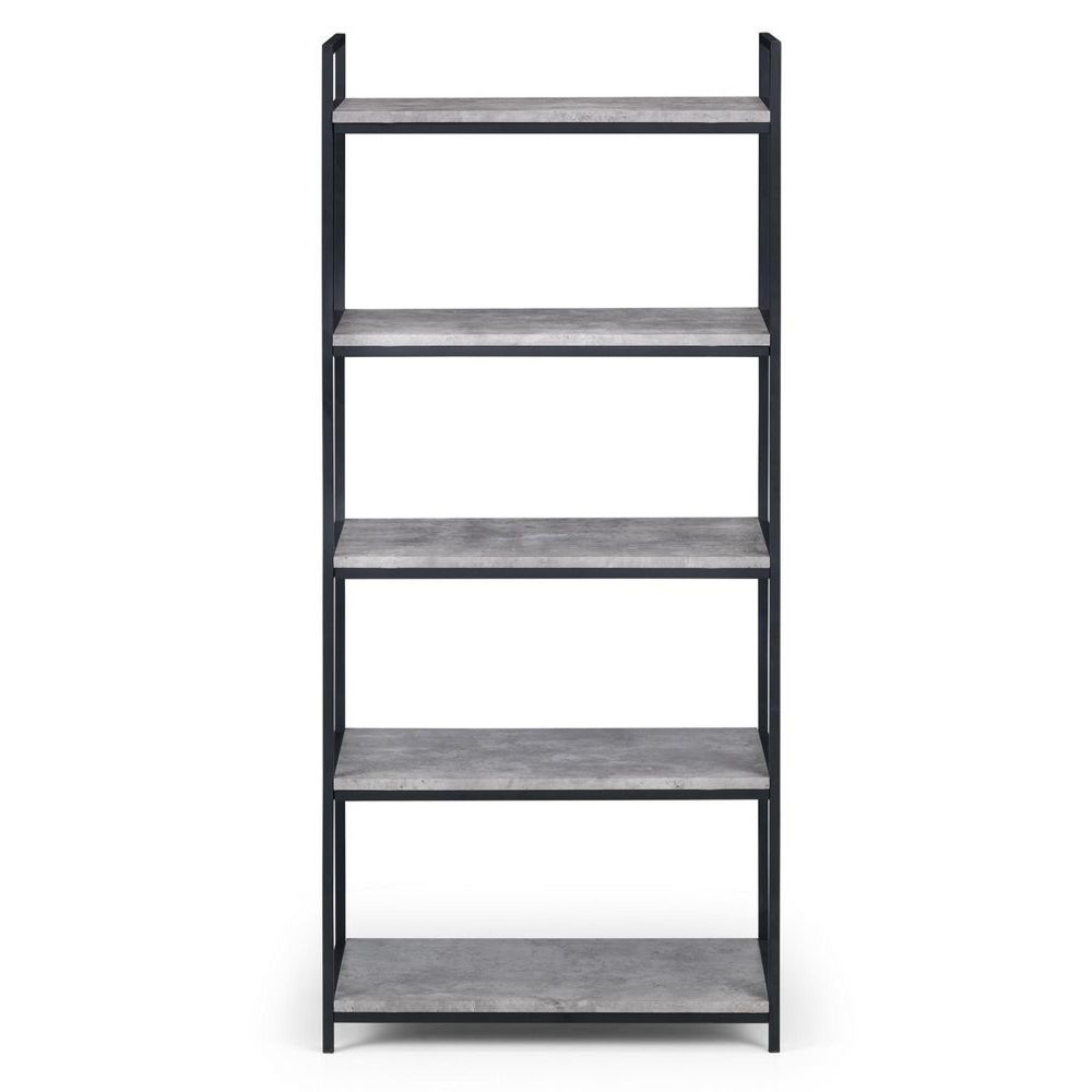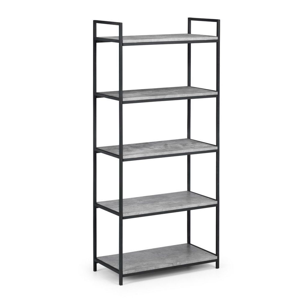Item Code: STA103 This contemporary tall bookcase is perfect for updating any home. Featuring five shelves and a chic, concrete effect finish combined with black metal detailing, this bookcase provides effortless style without compromising on storage. Perfect for displaying books, photos, plants and more.