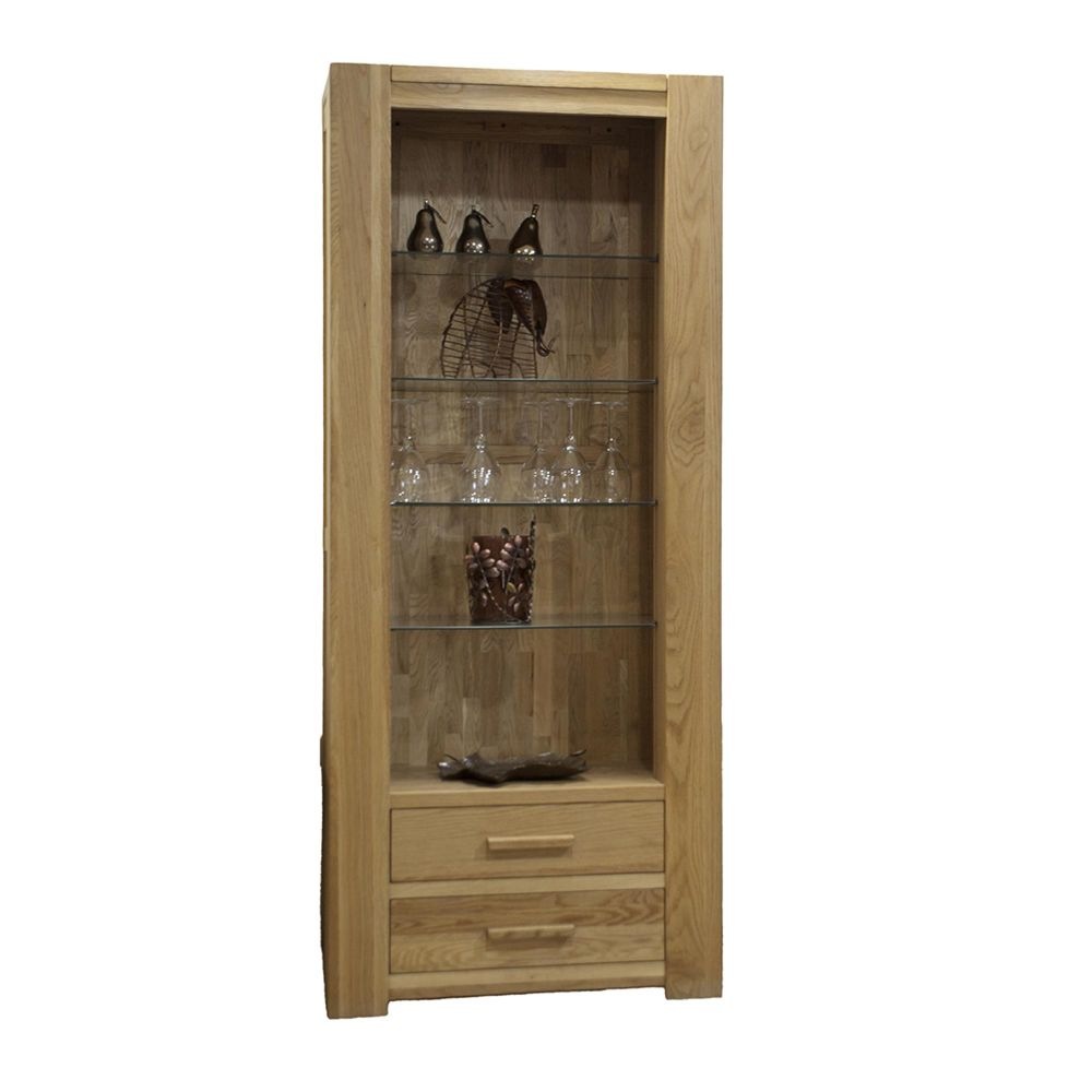 This solid oak bookcase features four open glass shelves and one solid wooden bottom shelf, offering ample space to display your favourite books, ornaments, or family photographs. The inclusion of two compact drawers with dovetail joints, solid oak drawer boxes, and oak runners and stoppers adds discreet storage for smaller essentials, combining practicality with craftsmanship.