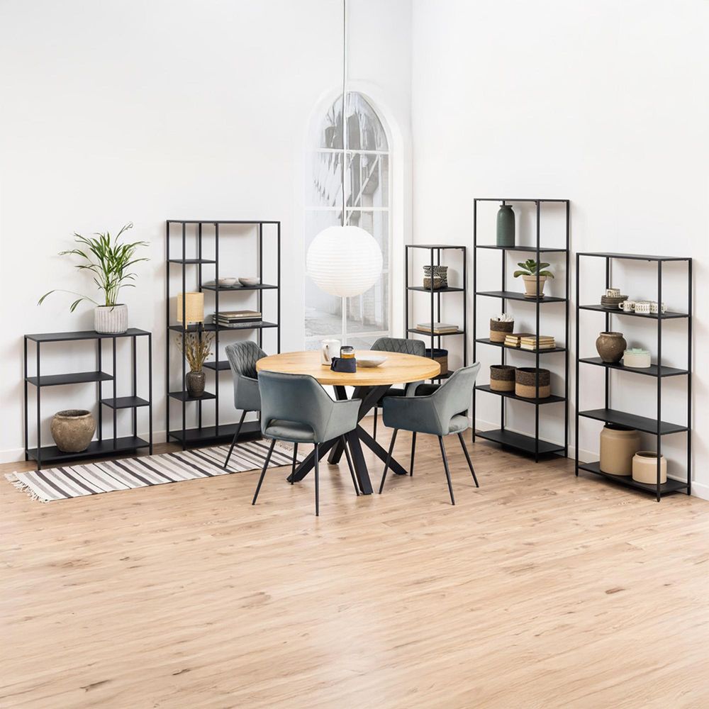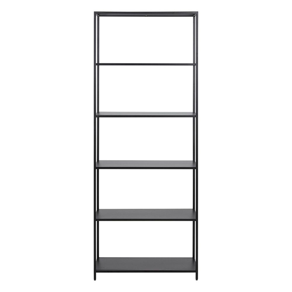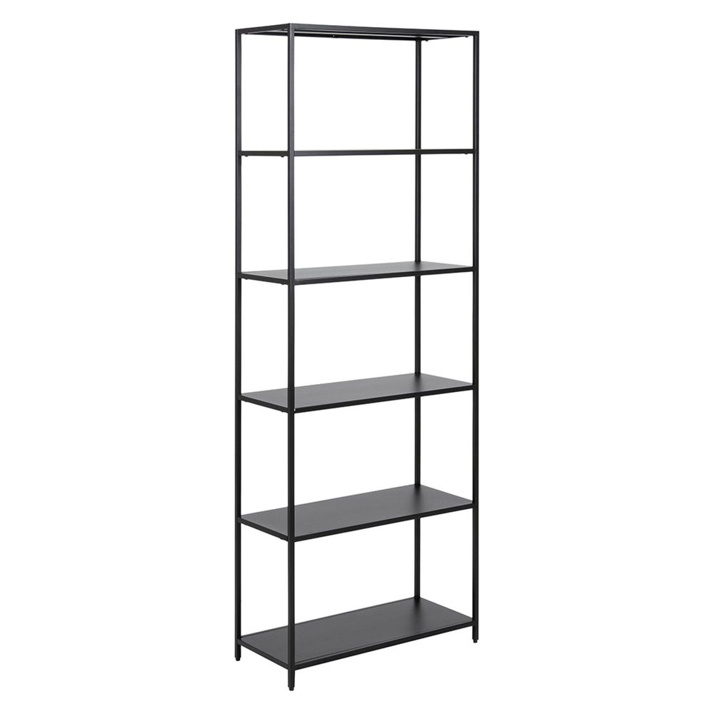 Item Code: 90980 This contemporary bookcase is a great addition to any room. It features 6 shelves crafted from matt black metal, providing plenty of space for books, decorations, and more. With its tall, open design, this bookcase adds elegance and style while offering quick and easy access to your items. Perfect for modern or traditional spaces, this bookcase gives you stylish storage solutions.