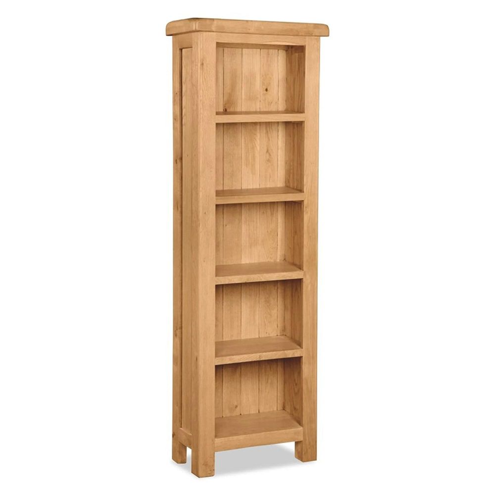 Bring timeless beauty and practical storage into your home with the Salisbury Premium Oak Narrow Bookcase. Crafted from oak veneer, this elegant piece is designed to showcase the natural character of the wood while offering lasting quality. Its slim profile makes it the perfect solution for smaller spaces without compromising on style or functionality.
