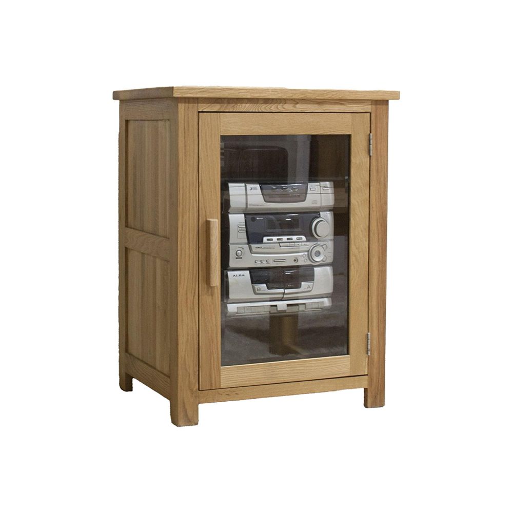 1 framed glass door with internal shelving—ideal for HiFi components
