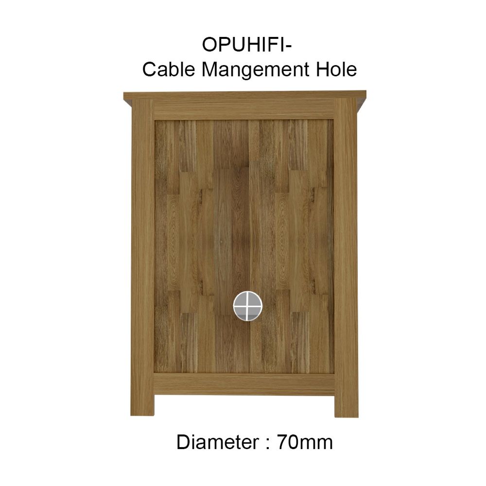 Finished in a clear low-sheen lacquer, the warm oak grain is brought to life while being protected against daily wear. The design features a chunky top, clean lines, and a panelled back, aligning perfectly with the wider Opus Oak Collection. A rear cut-out ensures cables can be kept tidy and hidden.