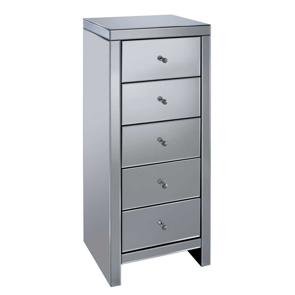 Seville Tall Chest - 5 Drawer - Mirrored