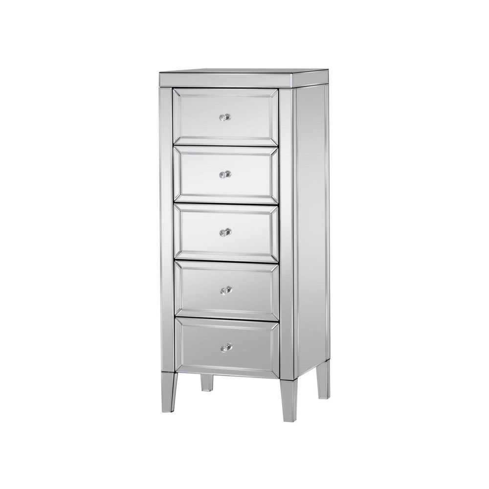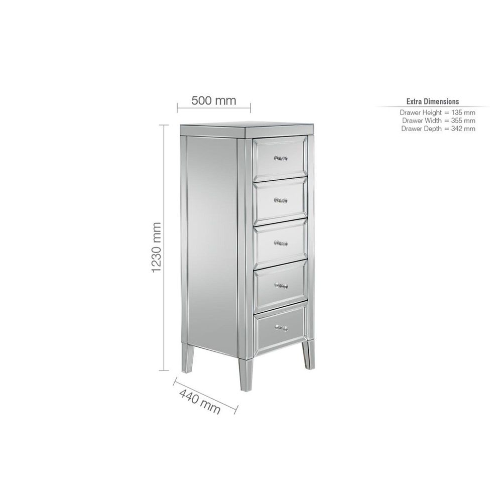 Valencia Narrow Chest - 5 Drawer - Mirrored