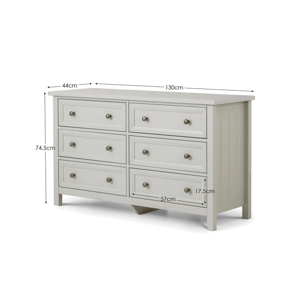 Maine Chest of Drawers - 6 Drawer - Wide - Grey