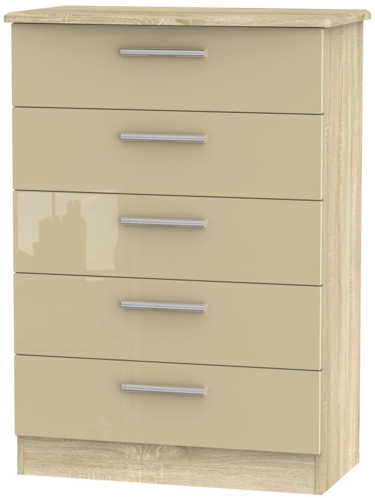 Knightsbridge Mushroom and Oak Effect 5 Drawer Chest
