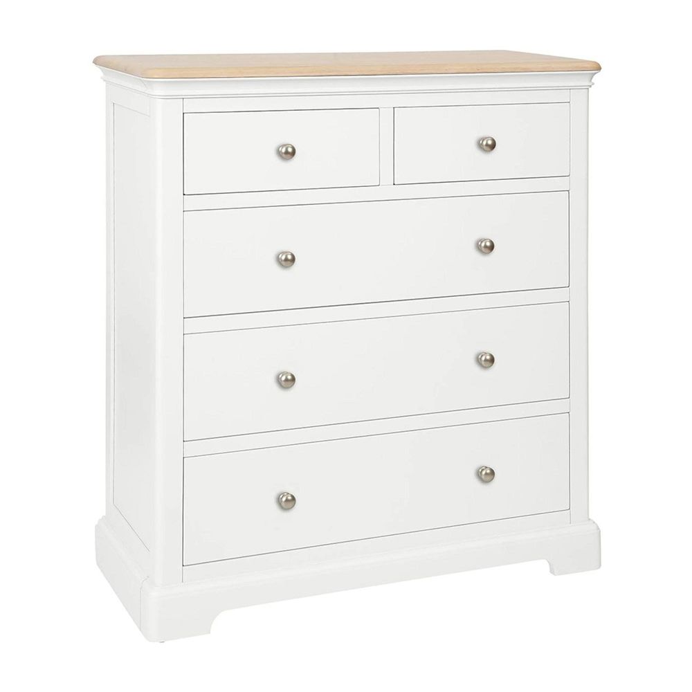 The Cromwell White Painted 2+3 Drawer Chest is designed for those who value timeless craftsmanship and functional storage. With a balanced blend of traditional charm and modern appeal, this piece brings a light-toned, neutral look to your bedroom while offering generous storage space for clothing, accessories, or linens.