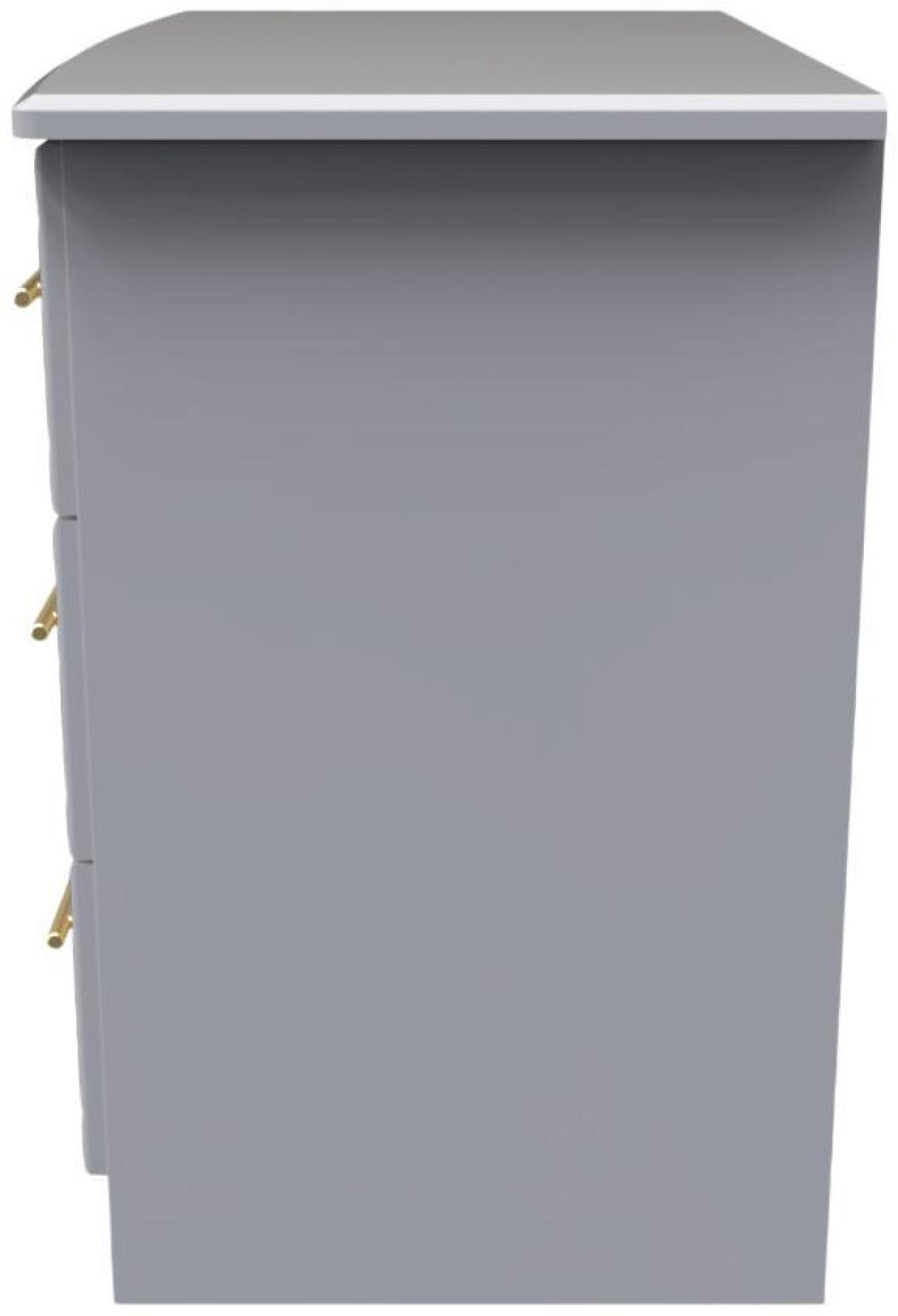 • Carcass: 18mm MFC furniture board, with ABS edging tapes (2mm)• Front: 18mm MDF , HTV Vinyl wrapped. With 2 mm edge. Routed pattern.• Construction: Glued, dowelled and screwed. Metal KD fixings, castors wheel• Handle: (Sherwood) metal ?T? bar, gold coloured bar. 235mm / 535mm• Drawer:18mm MFC, HTV Vinyl wrapped . 3mm hardboard base, chipboard wrap with a 15mm wall. Soft close.• Top: 18mm MDF, HTV Vinyl Wrapped• Drawer Runner: Soft close York runner