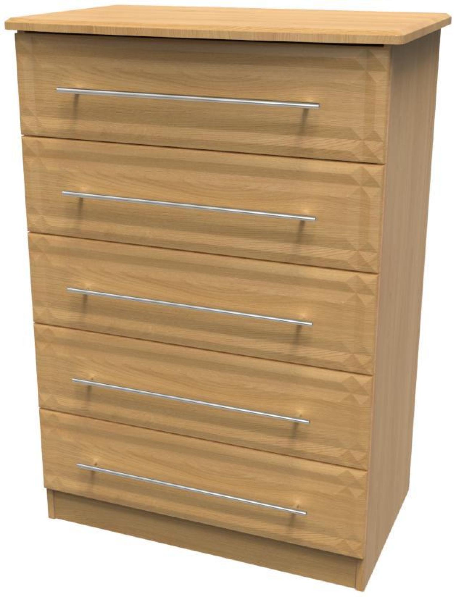 Chamfered edges combined with contemporary and modern styling create the Faye range. This stylish range is available in a selection of durable scratch resistant wood effect or matt finishes. With gold T-Bar handles on all doors and drawers.