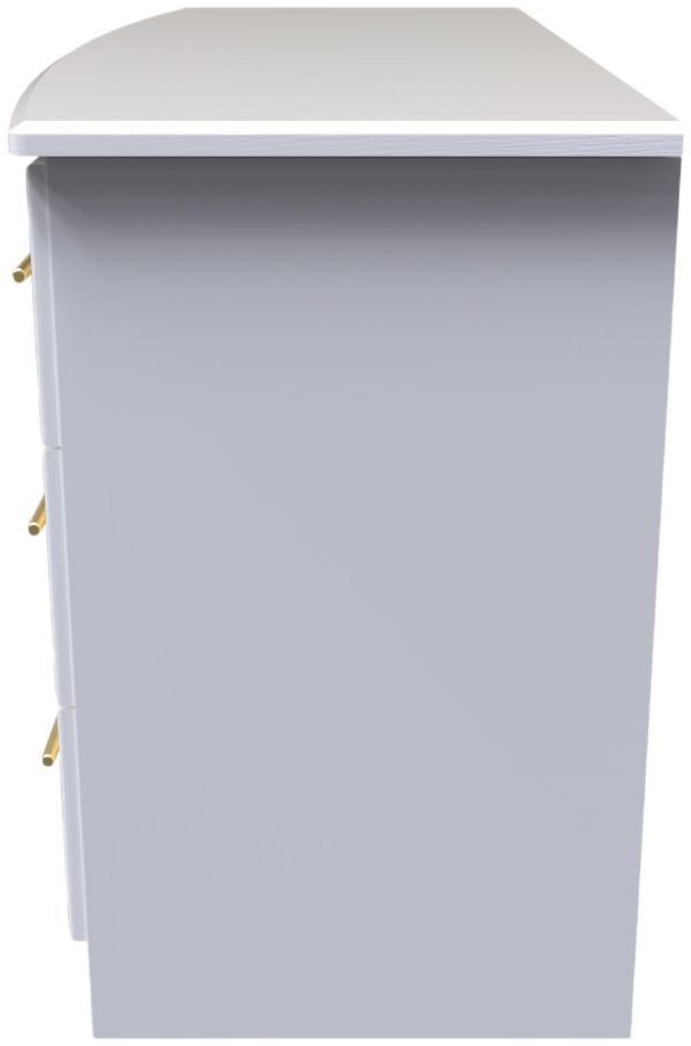 • Carcass: 18mm MFC furniture board, with ABS edging tapes (2mm)• Front: 18mm MDF , HTV Vinyl wrapped. With 2 mm edge. Routed pattern.• Construction: Glued, dowelled and screwed. Metal KD fixings, castors wheel• Handle: (Sherwood) metal ?T? bar, gold coloured bar. 235mm / 535mm• Drawer:18mm MFC, HTV Vinyl wrapped . 3mm hardboard base, chipboard wrap with a 15mm wall. Soft close.• Top: 18mm MDF, HTV Vinyl Wrapped• Drawer Runner: Soft close York runner