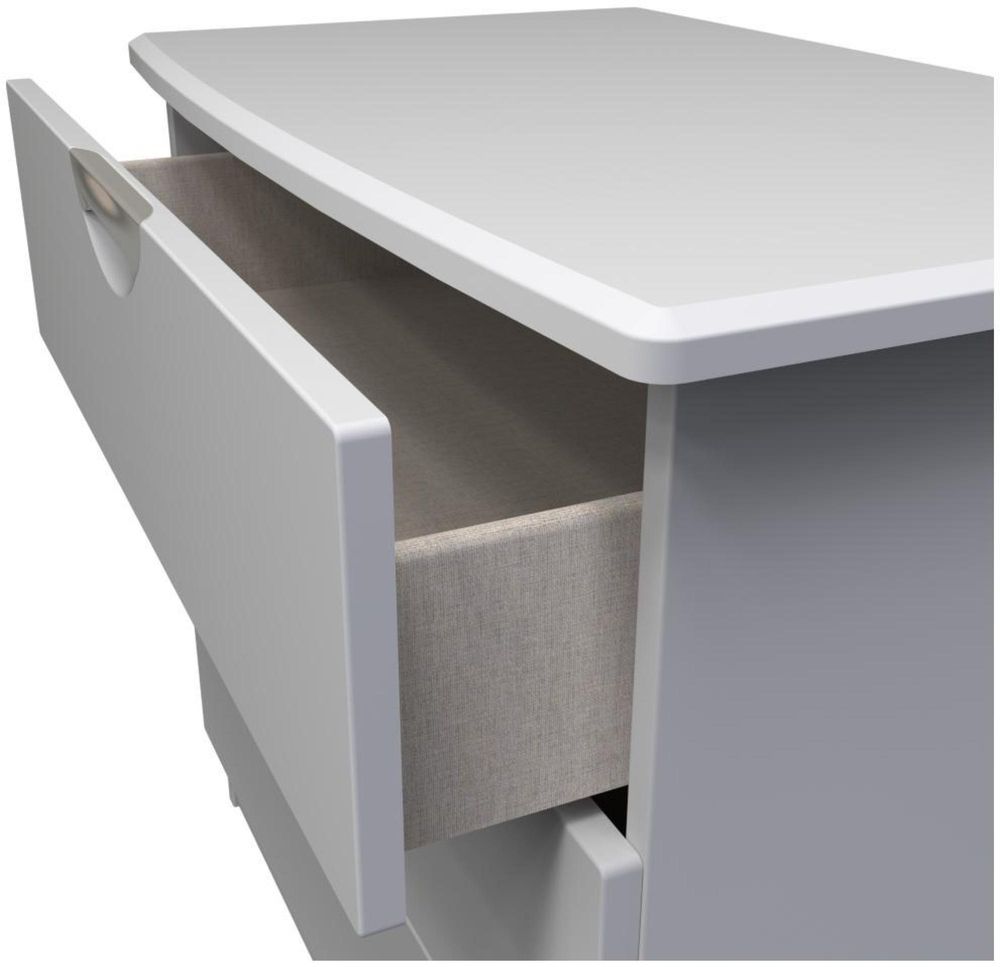 This range is complemented by distinctive cut-out handles and a smooth finish for a great mix of style and functionality.Boasting a clean, contemporary look and pleasing practicality, the furniture range makes a seamless addition to any modern looking space. All pieces use a scratch-resistant vinyl to help prevent the wear and tear that can come with everyday usage, and is complemented by distinctive cut-out handles and a smooth finish for a great mix of style and functionality.