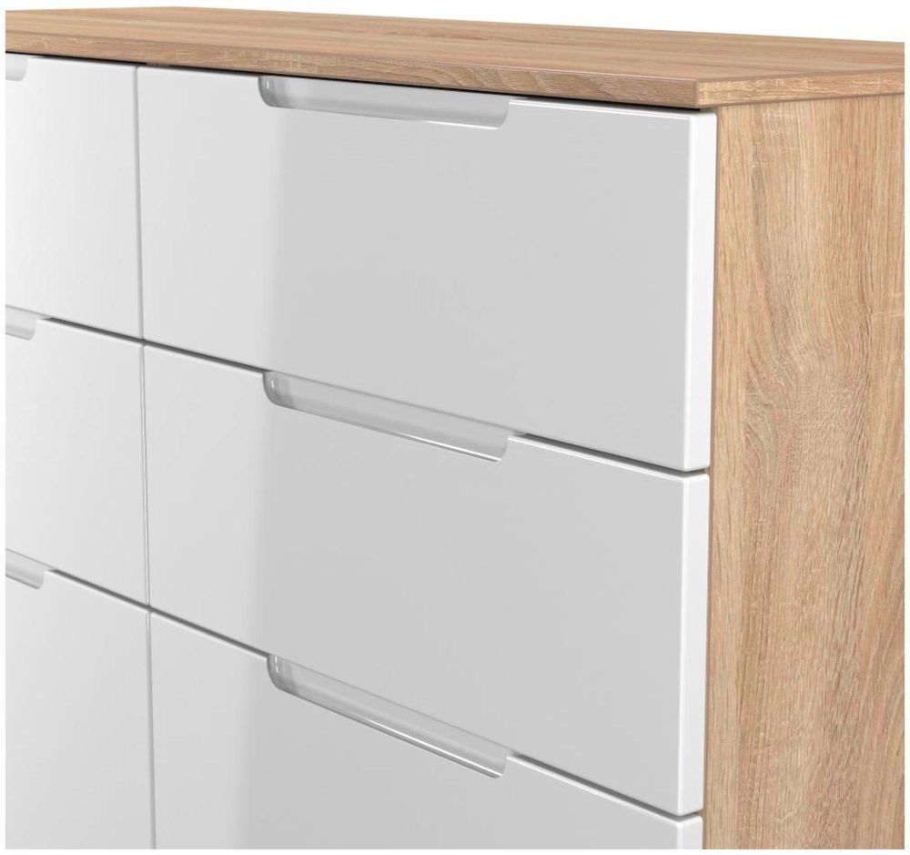 Milan White Gloss and Oak Effect 6 Drawer Midi Chest