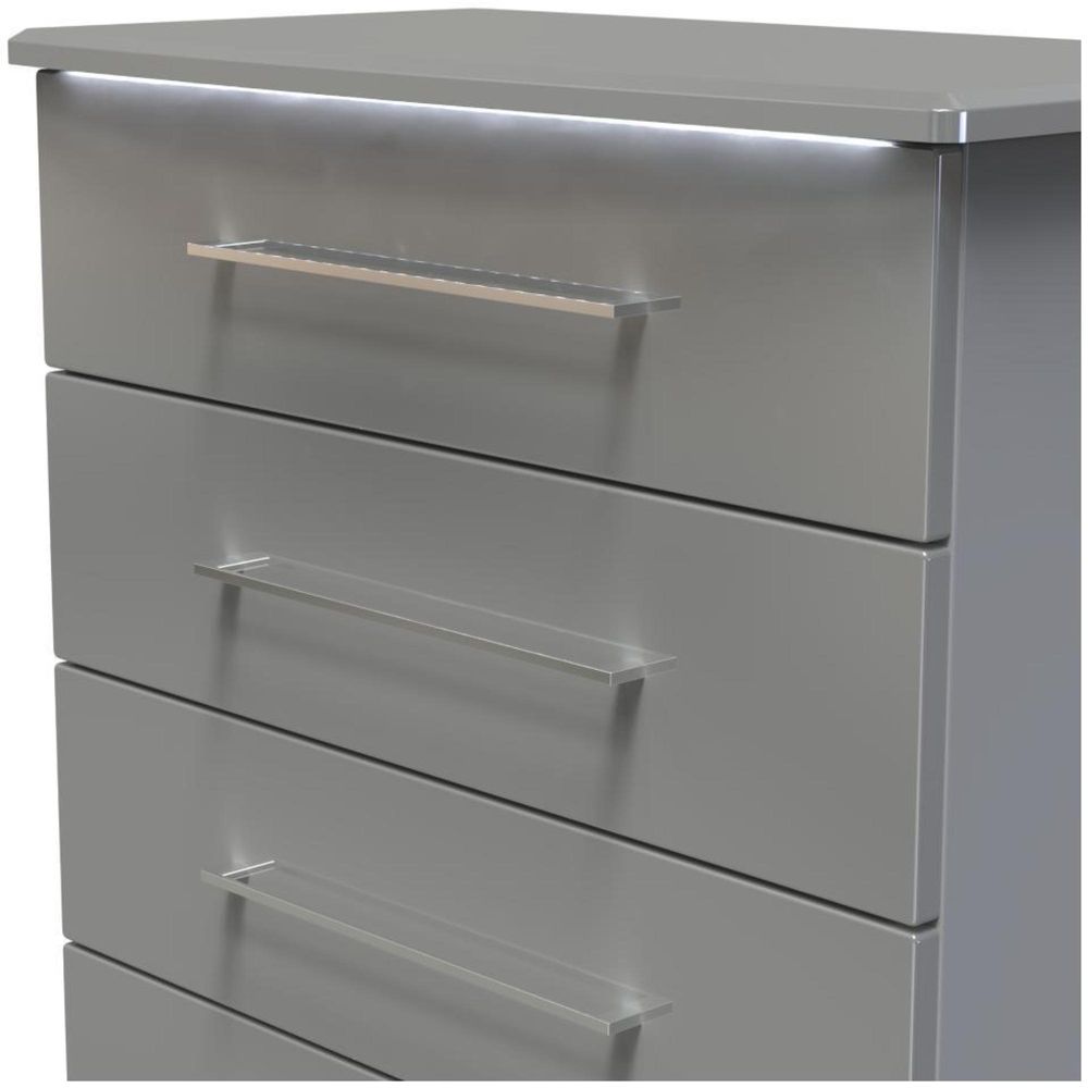 The 'Paris' range features sleek, high-gloss fronts, complemented by integrated LED lighting under the top surfaces. This creates a warm, inviting ambiance, perfect for any room.