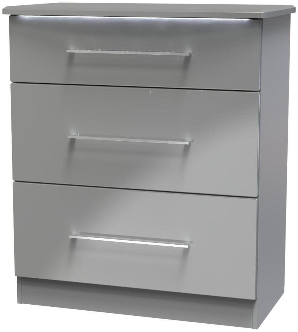 The 'Paris' range features sleek, high-gloss fronts, complemented by integrated LED lighting under the top surfaces. This creates a warm, inviting ambiance, perfect for any room.
