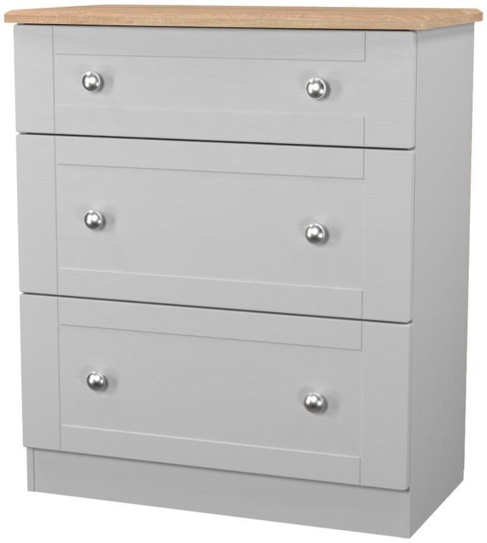 Sussex Grey and Oak Effect 3 Drawer Deep Chest