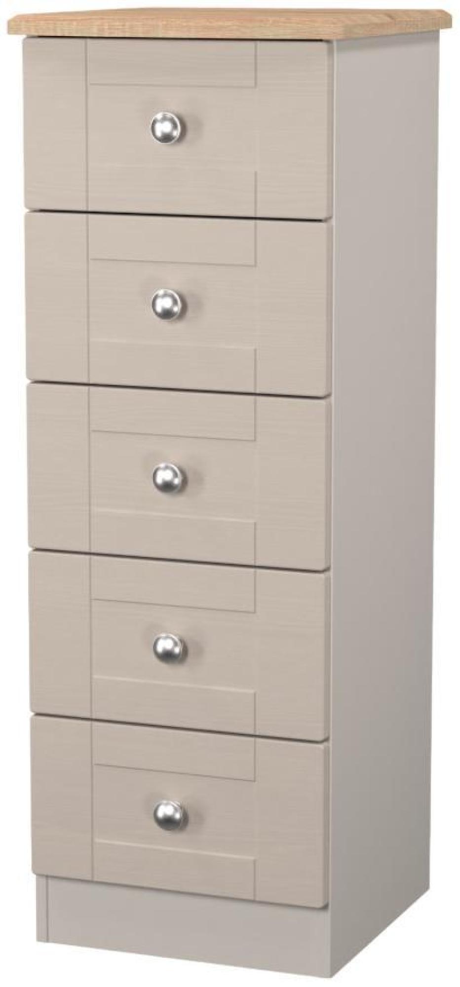 Sussex Cashmere and Oak Effect 5 Drawer Narrow Chest