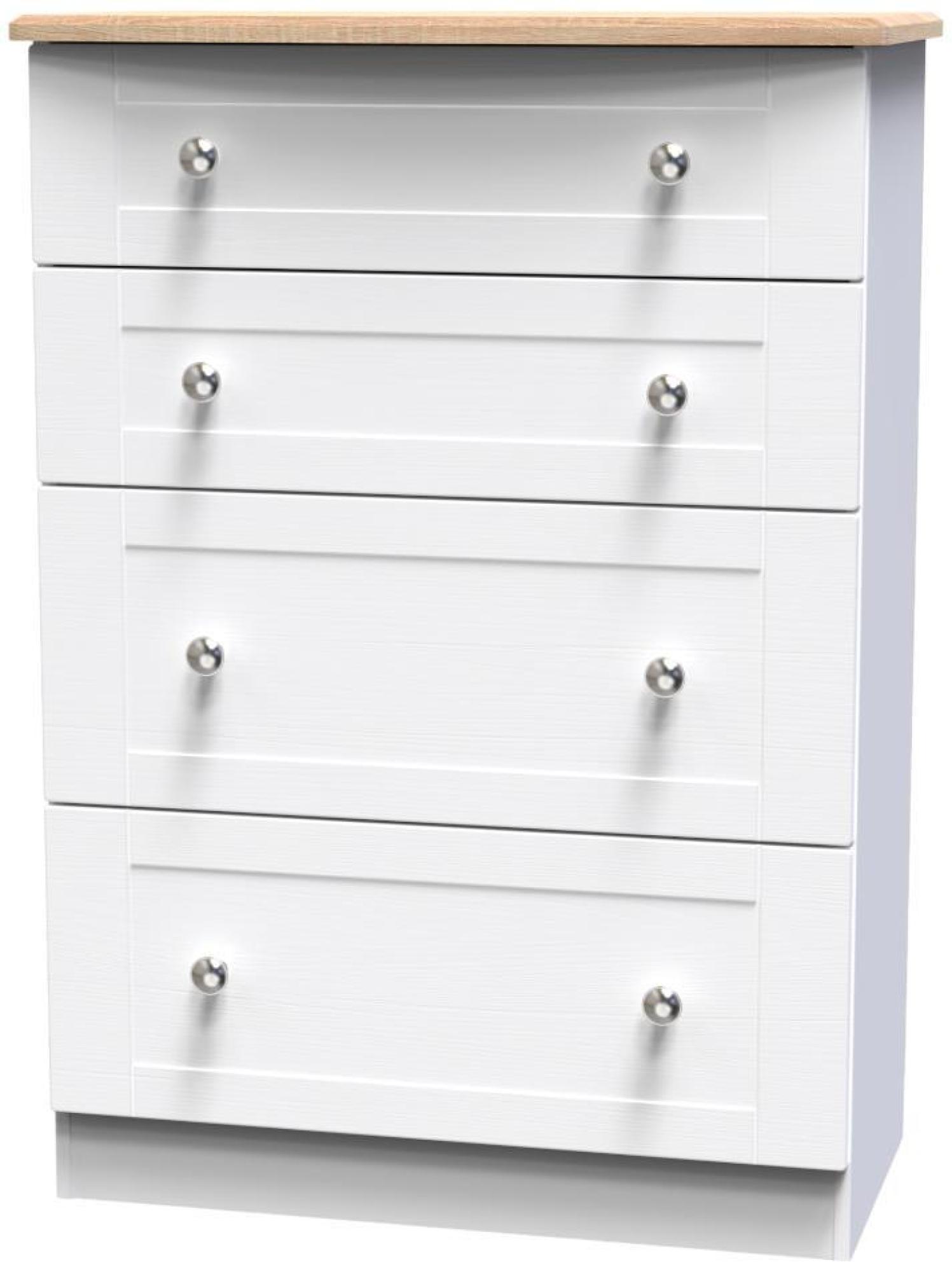 Sussex White and Oak Effect 4 Drawer Deep Chest