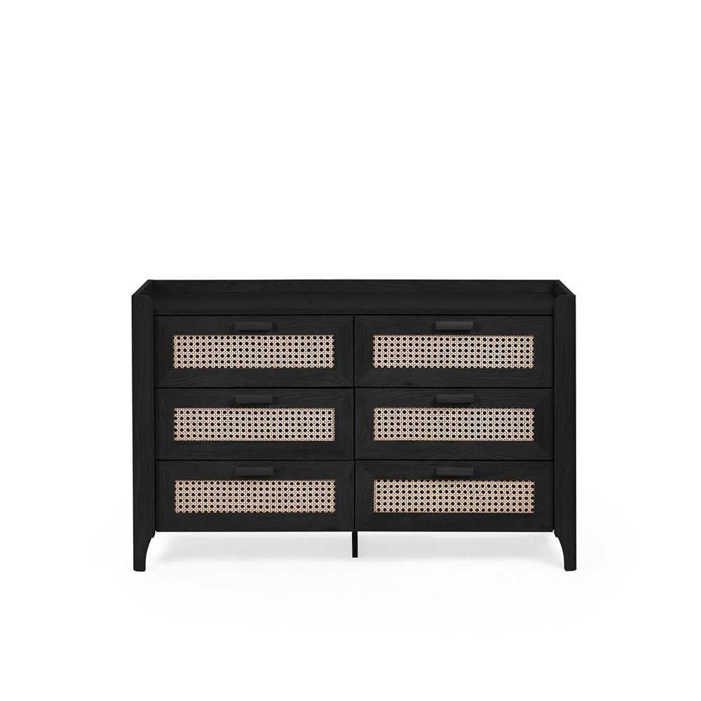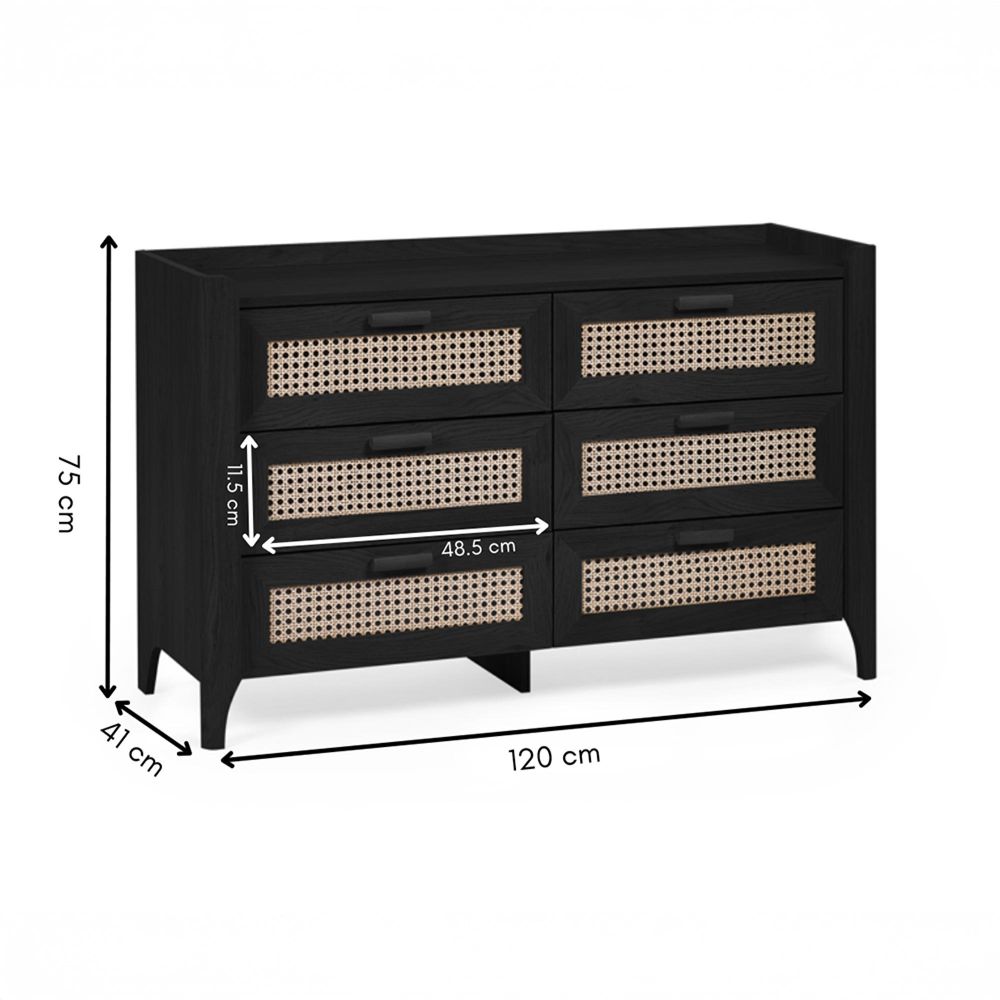 Sydney Chest of Drawers - 6 Drawer - Wide - Black and Faux Rattan