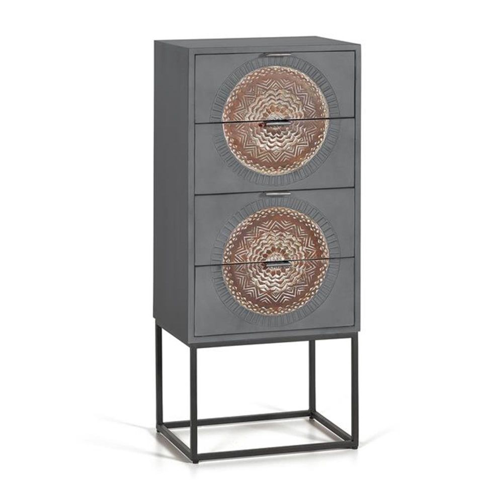 Lytton Tall Chest - Grey Carved Mango Wood - 4 Drawer