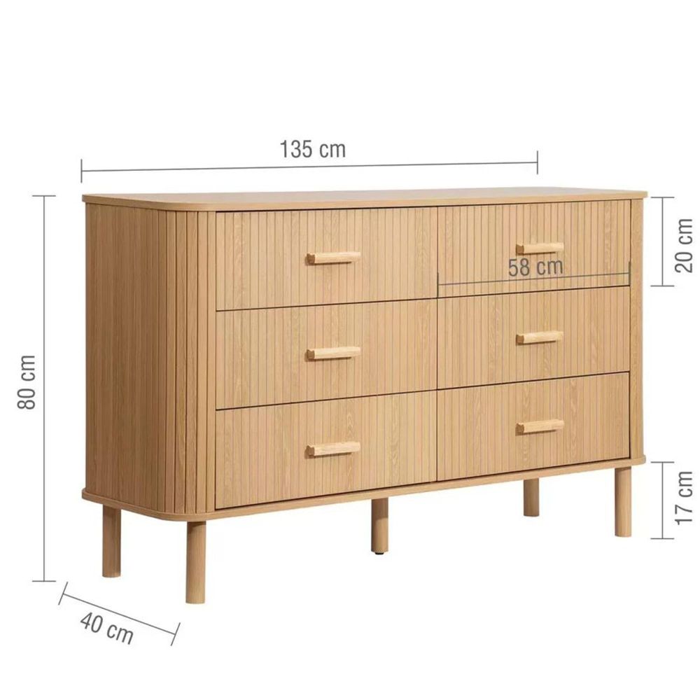 Axel Curved Wide Chest - 6 Drawer - Oak Fluted