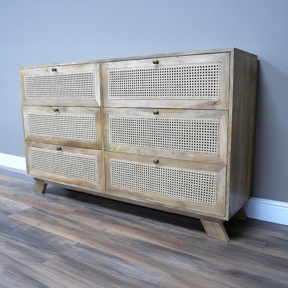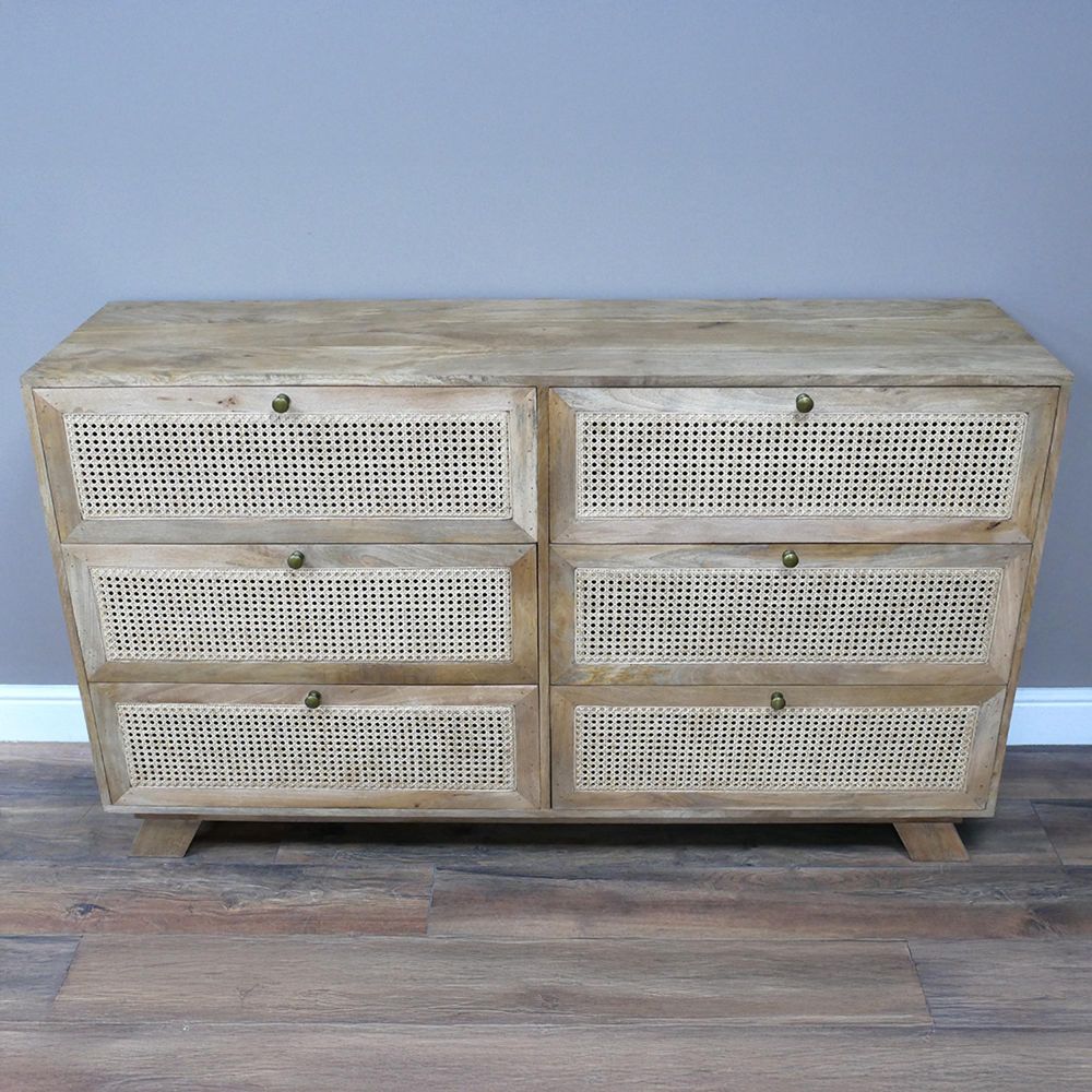 Chest - Mango Wood and Rattan - 6 Drawer - Wide