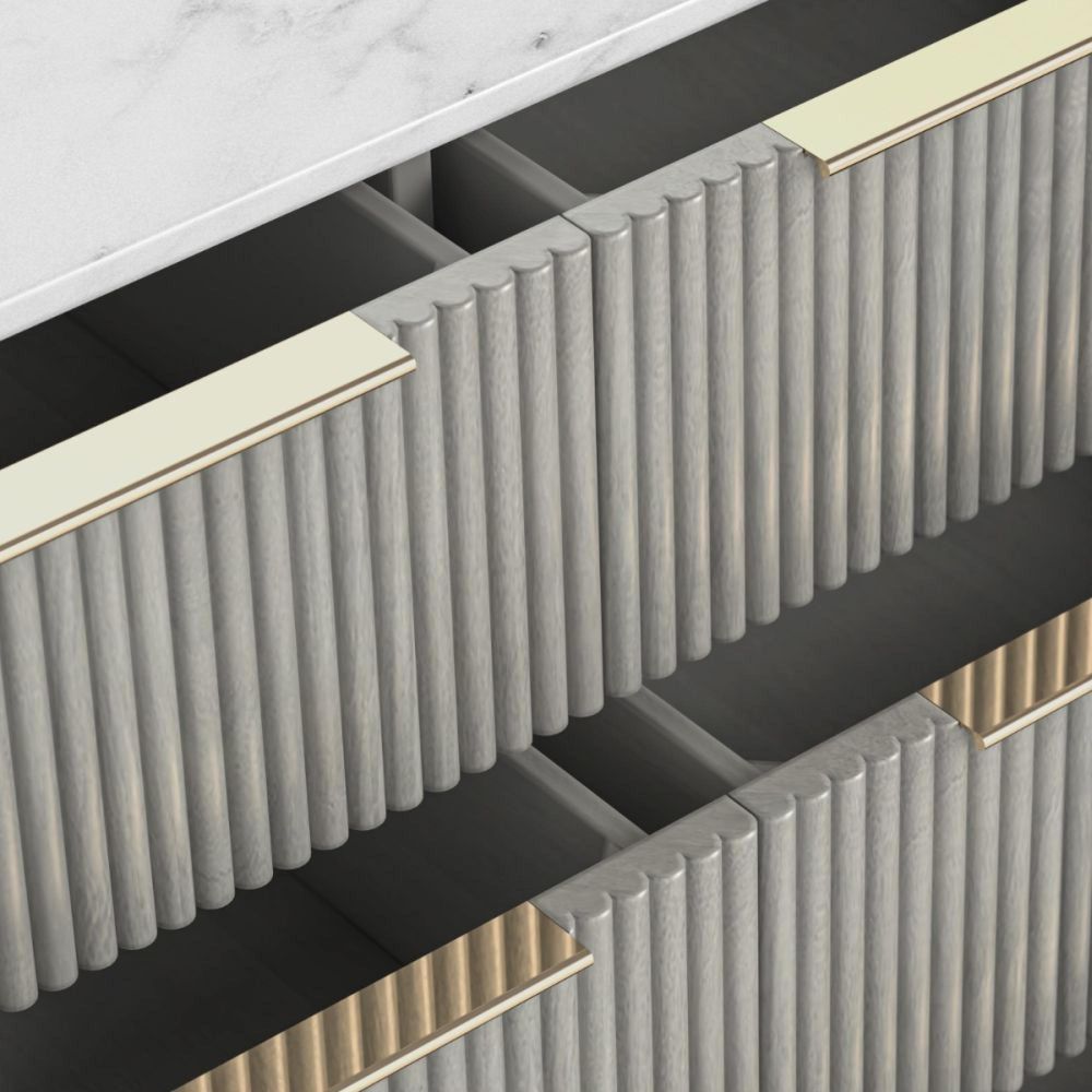 Bring elegance, functionality, and quality craftsmanship into your home with the Isabella Grey 6 Drawer Fluted Chest with White Marble Top—a stylish, practical, and enduring furniture piece.