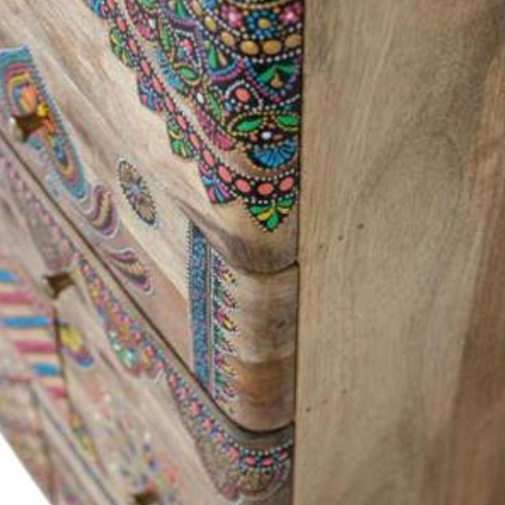 Item Code: 1574 Chest of drawers with 11 drawers made of solid mango wood, hand painted. As it is natural wood, it can come with its original knots and grains.
